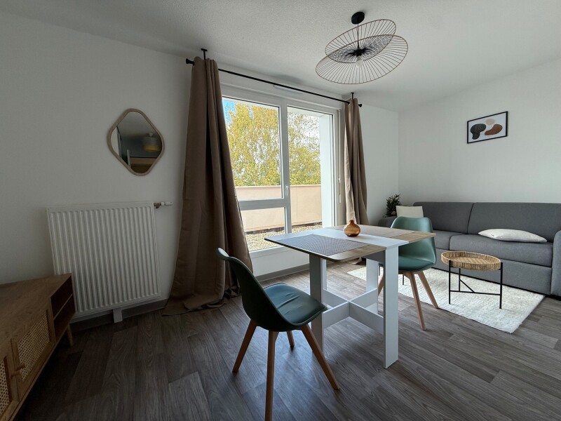 ** RENTREE GAGNANTE: 100EUR OFFERTS SUR 4 MOIS ** *offre valable pour entrée avant le 15 janvier 2026* RESIDENCE NEUVE AUX PORTES DE ROUEN STUDIO MEUBLE composé d'une entrée avec placard, d'une pièce à vivre avec cuisine équipée (évier inox, plaque...