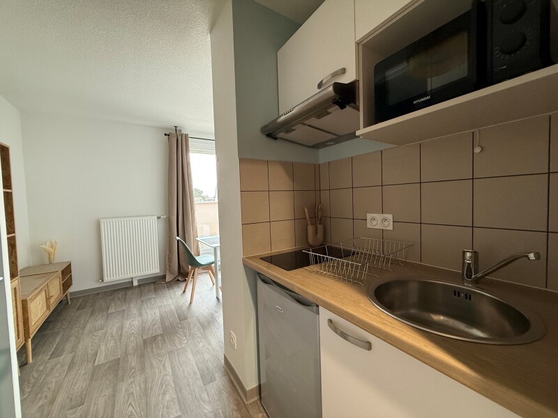 ** RENTREE GAGNANTE: 100EUR OFFERTS SUR 4 MOIS ** *offre valable pour entrée avant le 15 janvier 2026* A la location ce studio meublé dans une résidence neuve. Il est composé d'une entrée, d'une pièce à vivre avec cuisine équipée (évier inox, plaque...