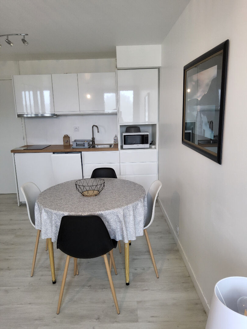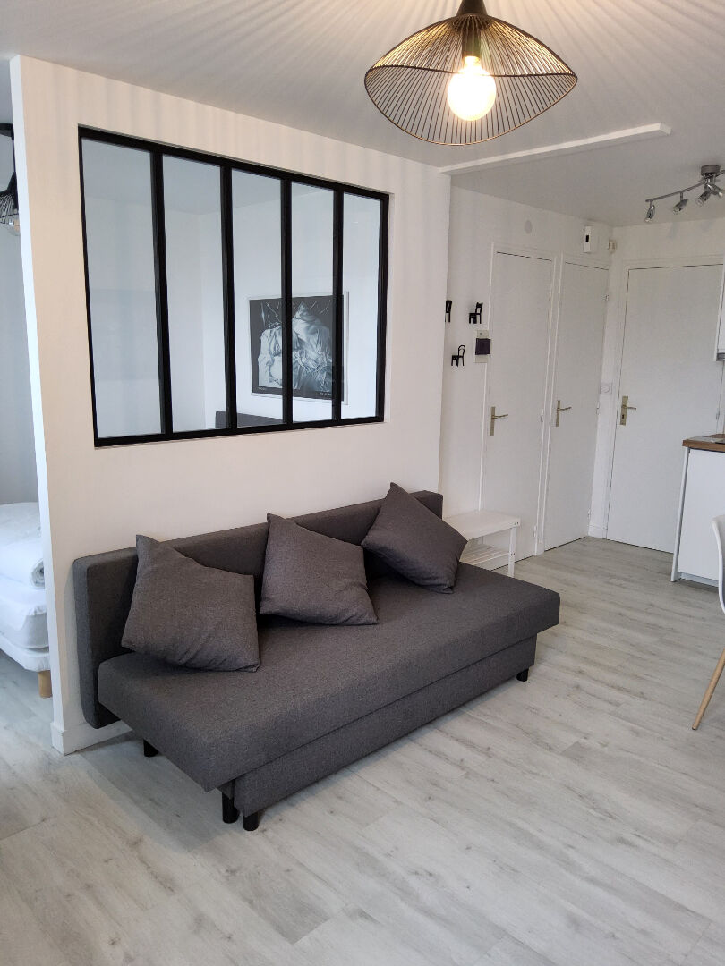Dans une résidence sécurisée, située à deux pas de la plage et des commerces, au 2ème étage studio meublé, numéroté 14, exposé Sud, comprend une entrée, une salle d'eau équipée d'une machine à laver, un WC séparé, séjour avec cuisine aménagée et équi...