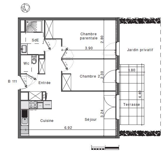 Il se compose d'une entrée avec visiophone et placard, un lumineux séjou...