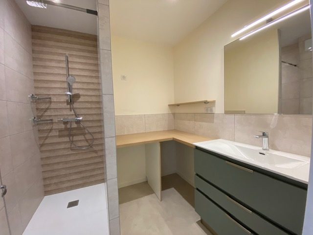 Appartement T3 en centre ville situé en rez-de-chaussée, comprenant un séjour ouvert sur une cuisine équipée et aménagée , deux chambres avec chacune sa propre salle d'eau et un WC séparé. Double vitrage et chauffage au gaz de ville. Parking à côté. Tou...