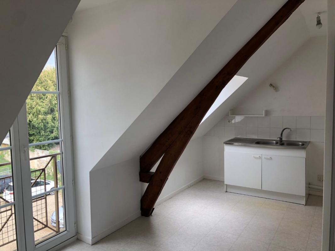 Gasny. Appartement de 50.50 m² au 2ème étage droite comprenant une entrée sur dégagement avec placard, un séjour ouvert sur un coin cuisine, deux chambres, une salle de bains et un wc.