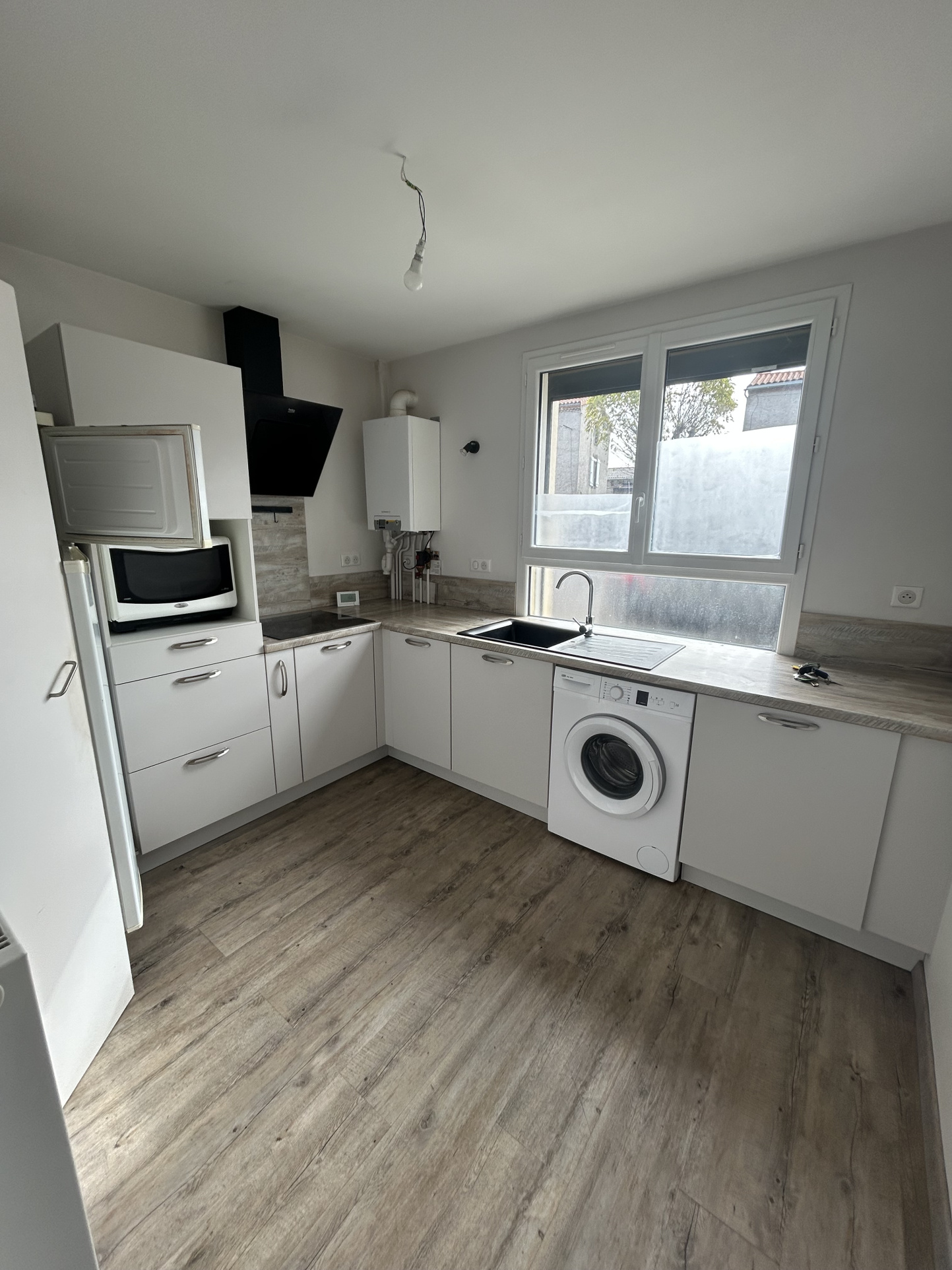 Appartement de type 2 meublé au rez-de-chaussée, situé sur la commune de Gerzat, comprenant une cusine équipée (avec hotte, plaque de cuisson, four/micro-ondes, réfrigérateur, lave-linge), un salon, une chambre, ainsi qu'une salle d'eau et un WC indé...