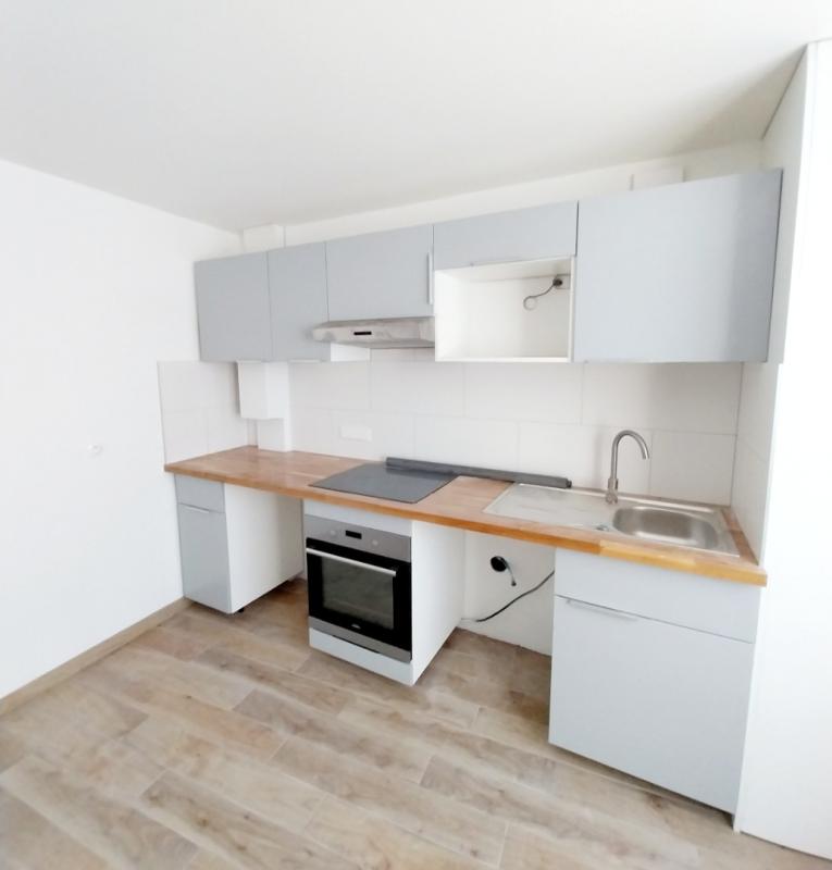 À louer, appartement T1 bis situé en rez-de-chaussée comprenant une entrée de 2,2m² avec placard, une pièce principale de 8,9m² avec coin cuisine aménagée, 1 chambre de 8,65m² et une salle d'eau de 3.04m² avec wc.