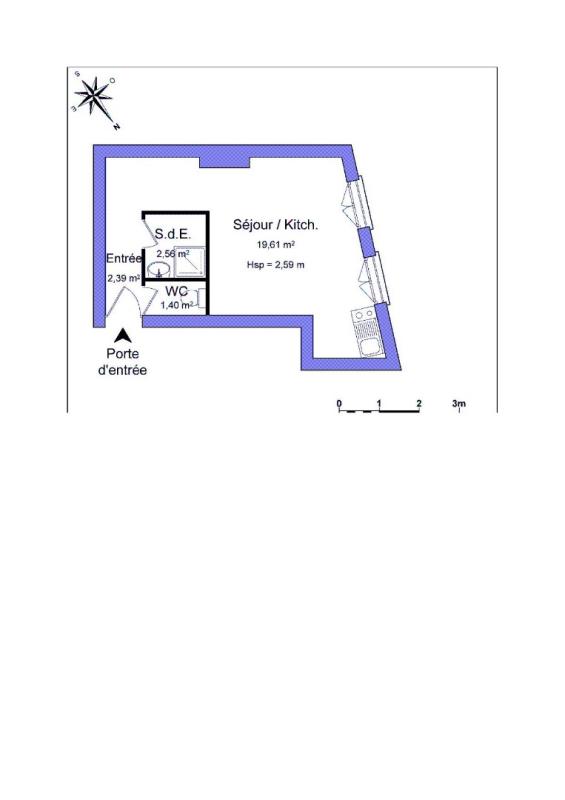 Cet appartement, de type de type studio comprend : une entrée, une pièce principale avec une kitchenette neuve, une salle de bain avec WC rénovée.