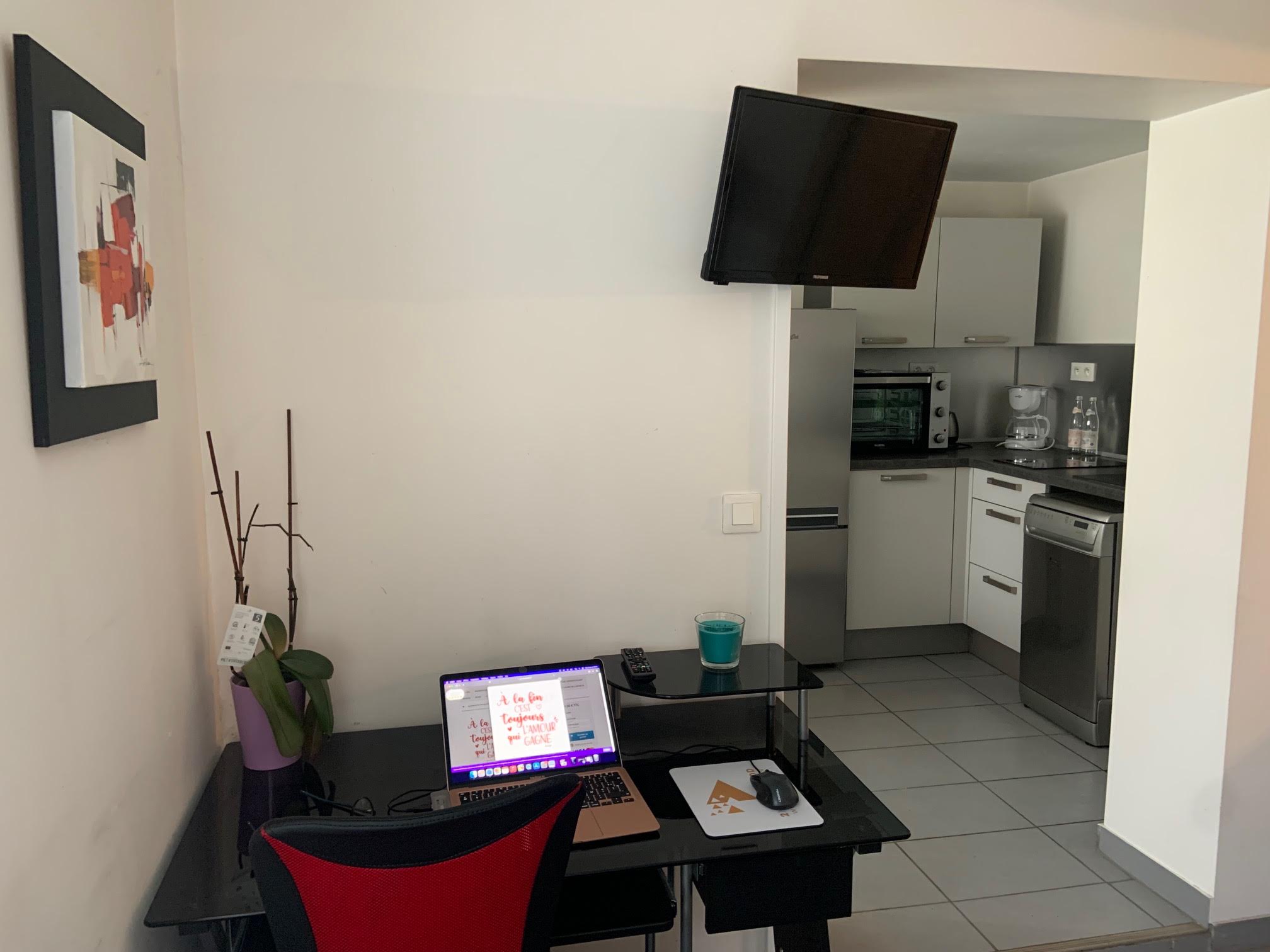 Joli studio compos? d'une pi?ce ? vivre avec kitchenette (frigo, plaque) ouverte sur s?jour, et une salle d'eau privative avec WC.