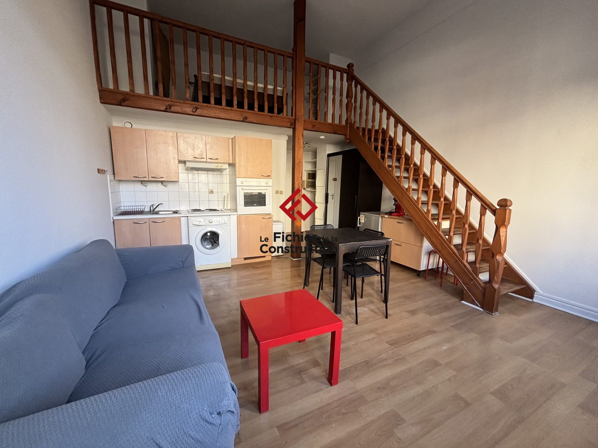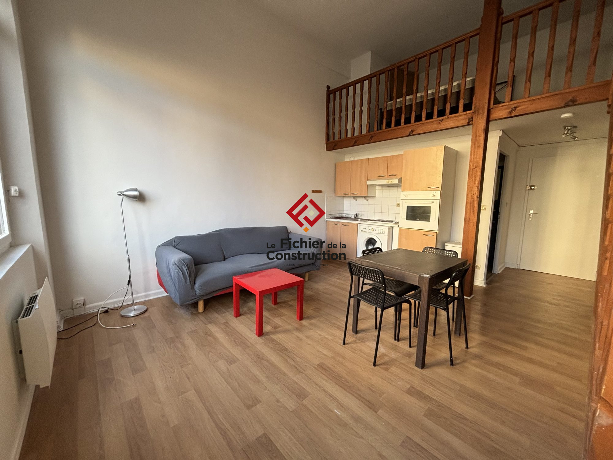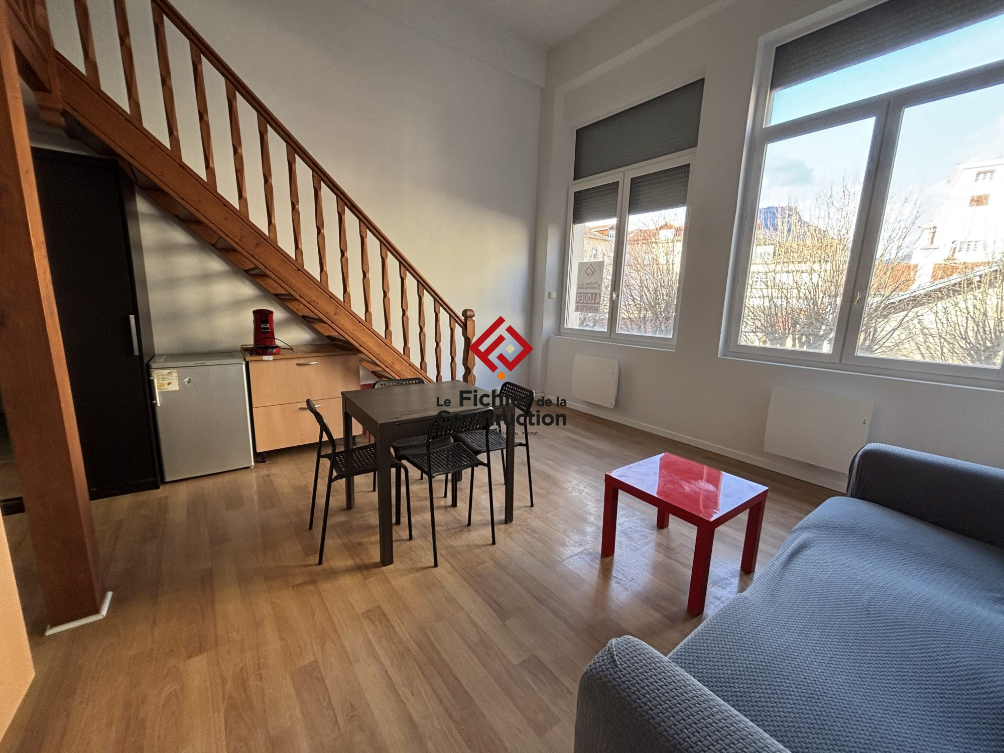 GRENOBLE - 20 rue Paris - Quartier de l'Aigle - Appartement meublé de type 1 pièce + cuisine de 27.45 m² au sol avec grande mezzanine à l'étage, pièce principale spacieuse et lumineuse avec grandes fenêtres et volets roulants électriques, kitchenette...