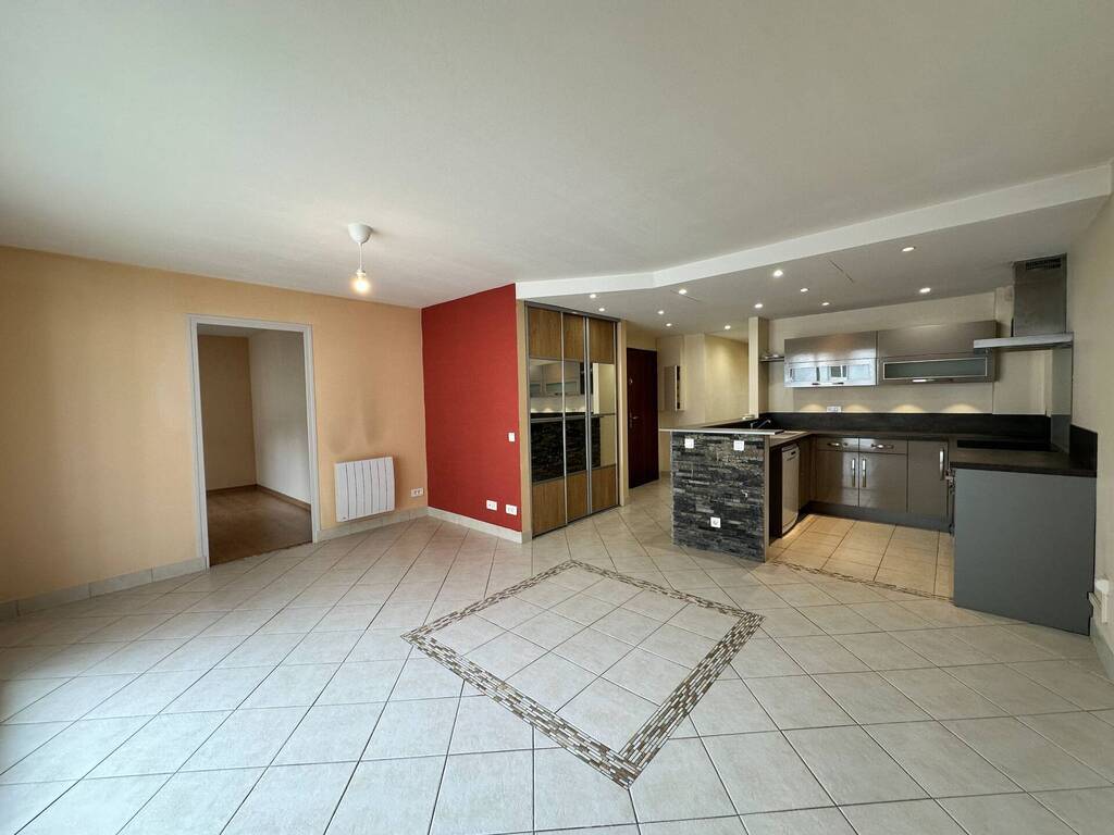 Agréable appartement de 3P+C de 55.90m² au dernier étage avec ascenseur, comprenant une cuisine équipée avec électroménagers ouverte sur la pièce de vie, grand balcon de 7.35 m² . Deux chamb...