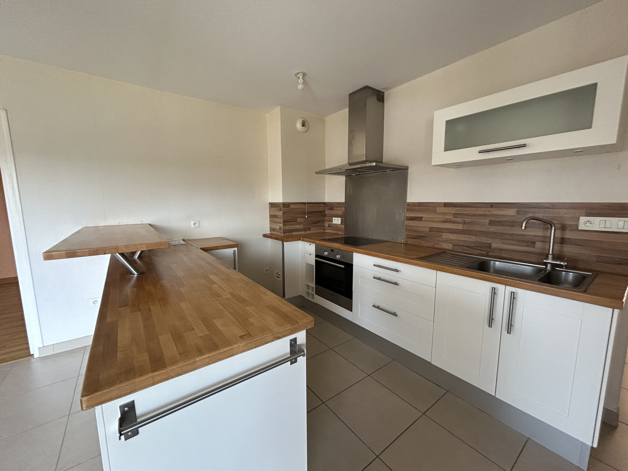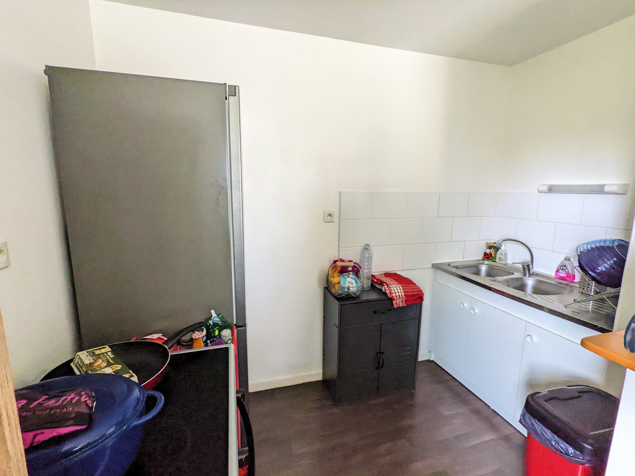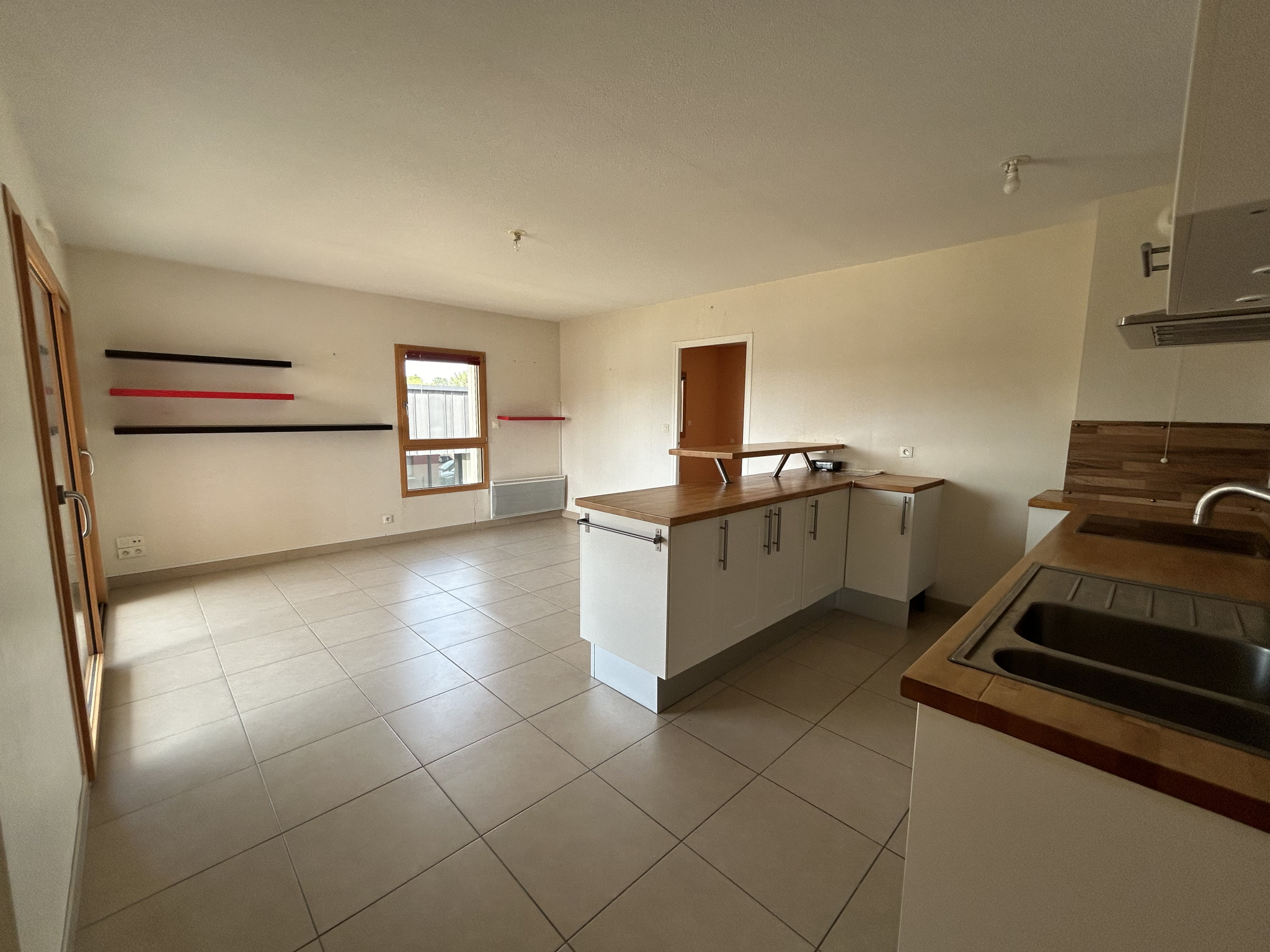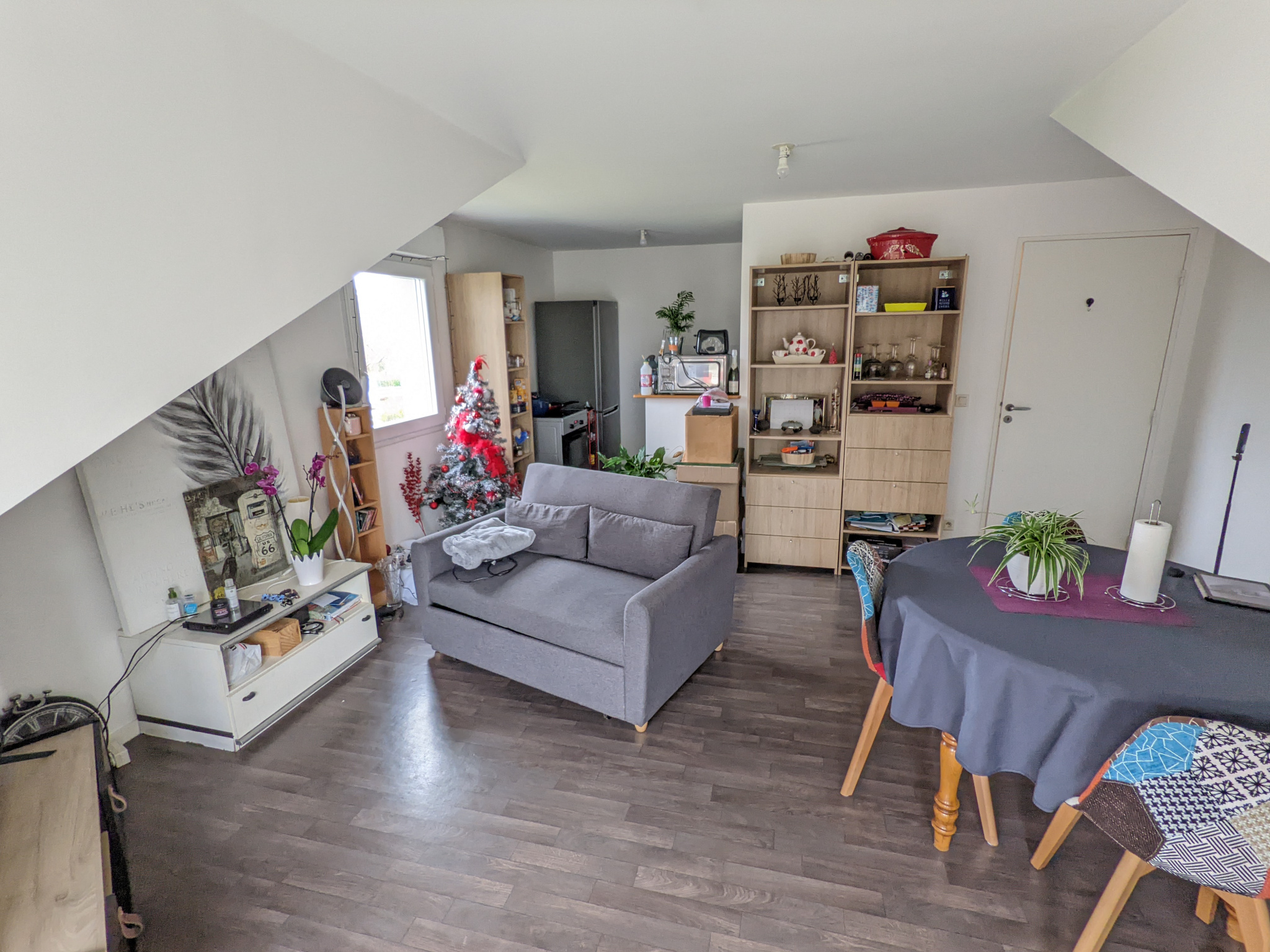 A LOUER A GUER un appartement composé au rez-de-chaussée d'un hall d'entrée. Au premier étage : un dégagement desservant une pièce de vie ouverte sur une cuisine aménagée, une salle d'eau, WC.