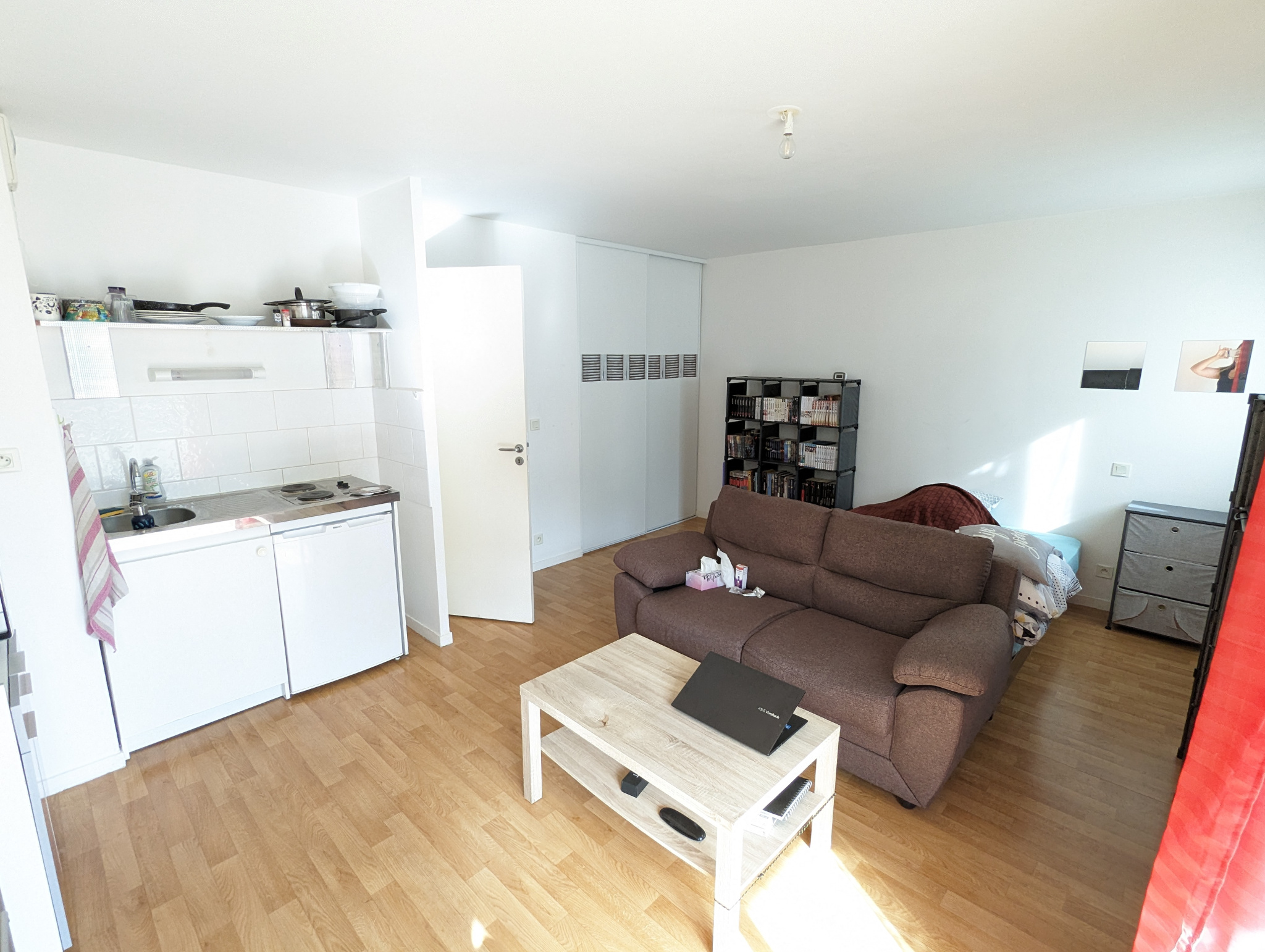 A louer à GUER, un studio situé au 1er étage dans une résidence sécurisée avec ascenseur avec un environnement calme, composé d'une entrée, une pièce de vie avec coin kitchenette, une salle d'eau avec WC.