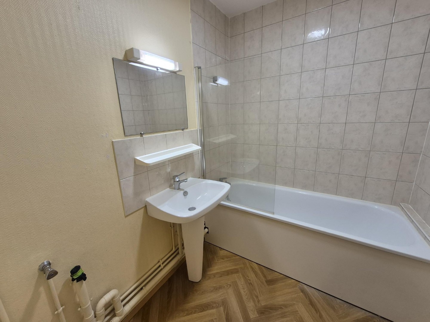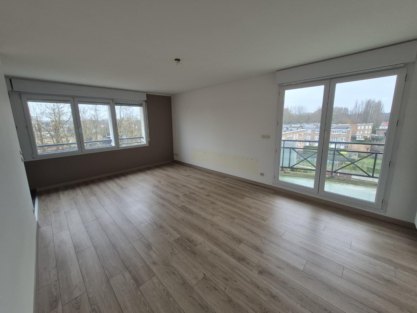 Hyper centre d'Haubourdin superbe appartement T2 avec vue sur la Deûle au 4eme et dernier étage avec ascenseur, il vous séduira par ses 2 grandes terrasses! Hall d'entrée avec rangements, séjour avec cuisine ouverte, salle de bains avec baignoire et ...
