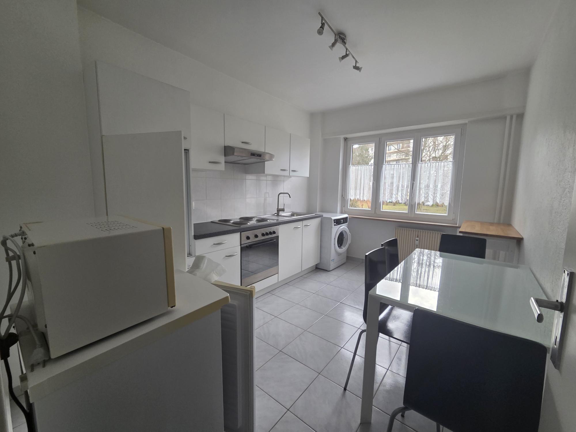 Mulhouse Bas Rebberg, nous vous proposons ce F3 meublé en Rch d'une superficie de 63 m² comprenant ;<BR><BR>1 Cuisine équipée Neuve, <BR>1 Salon, <BR>2 Chambres, <BR>1 Salle d'eau, <BR>1 WC. <BR><BR>Dou...