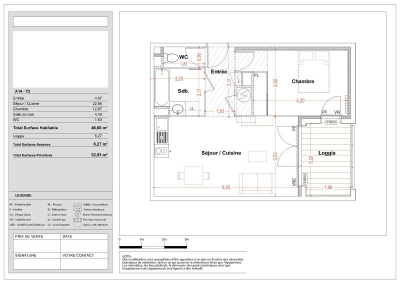 Cet appartement comporte une cuisine aménagée et une salle de bains. Le chauffage de l'immeuble est individuel fonctionnant au gaz. Cet appartement T3 est neuf...