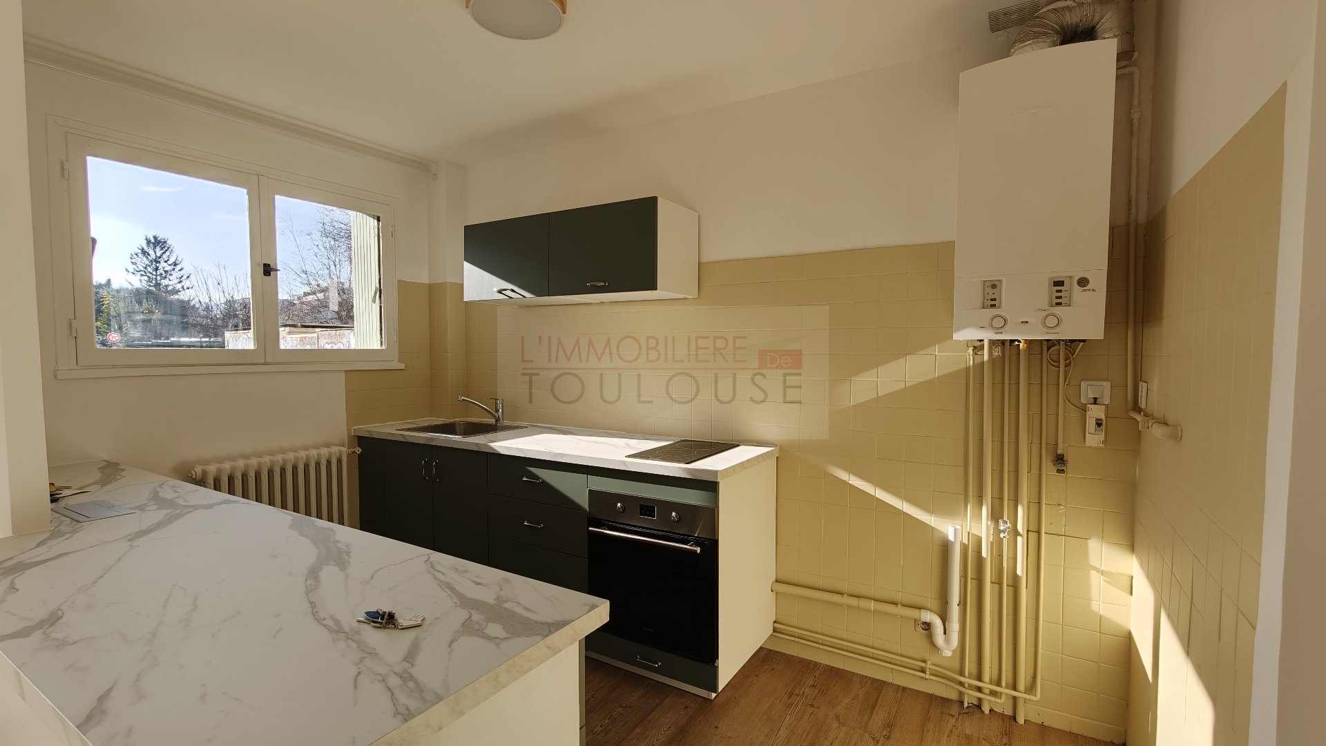 Sur les hauteurs de Rangueil, agréable T2 composé d'une entrée, d'un séjour avec cuisine équipée (évier inox, plaque 2 feux, hotte, meubles hauts et bas, frigo top), d'une chambre avec placard, d'une salle de bains aménagée avec WC, d&...