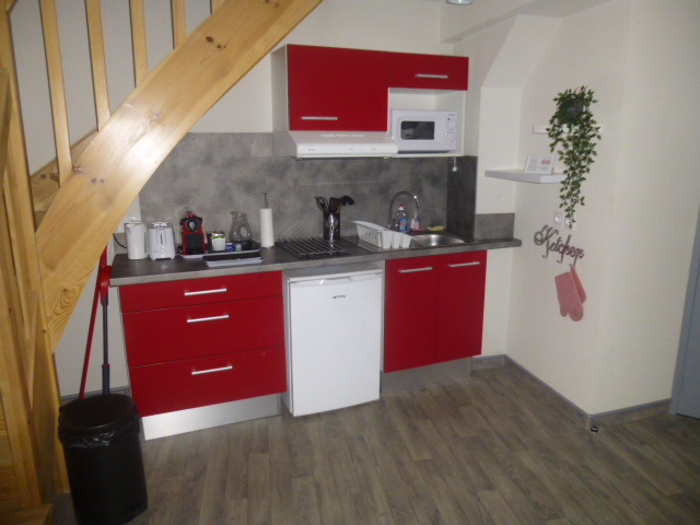 Au 3ème et dernier étage d'un petit immeuble rénové, T3, duplex, meublé avec cuisine équipée sur séjour, 2 chambres avec placards, 2 salles d'eau avec wc.