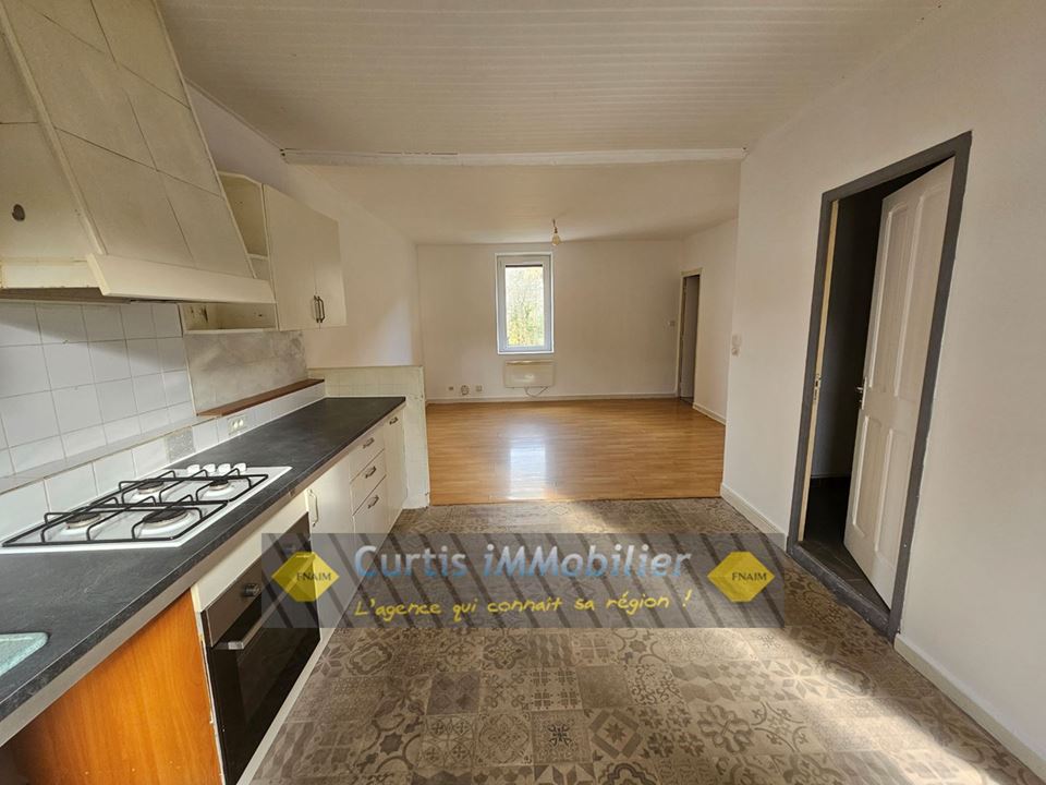 Appartement T3 au premier étage, composé d'une entrée, un séjour ouvert sur la cuisine, deux chambres et une salle d'eau avec WC.