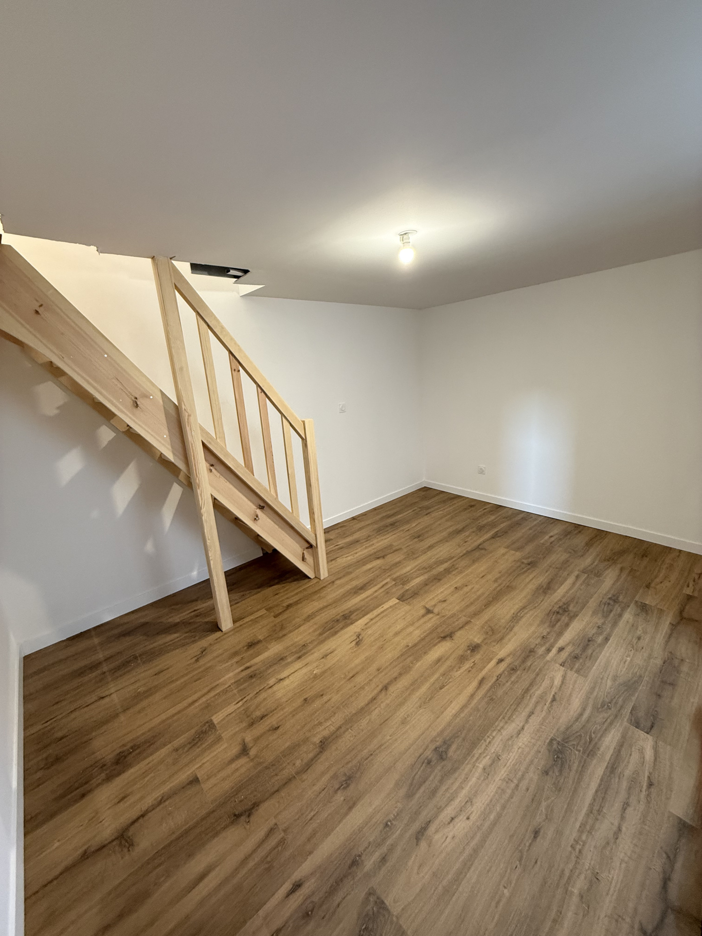 T3, rez-de-chaussée, refait à neuf, cuisine équipée sur séjour, 2 chambres dont une en souplex, salle d'eau wc
