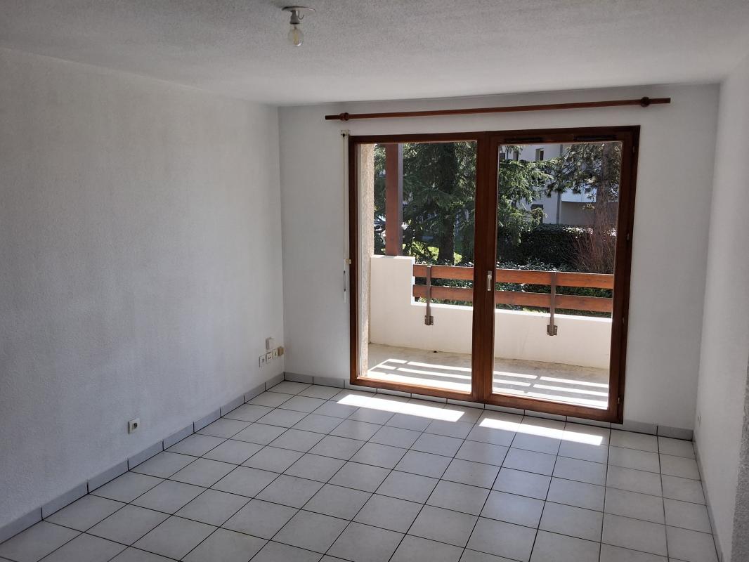 Secteur Bonneville proche centre : appartement de type T2 en rez-de-chaussée comprenant une entrée avec placard, une cuisine ouverte sur un grand séjour donnant sur une terrasse, une chambre avec placard, une salle de bain, un wcet une place de parking extérie...
