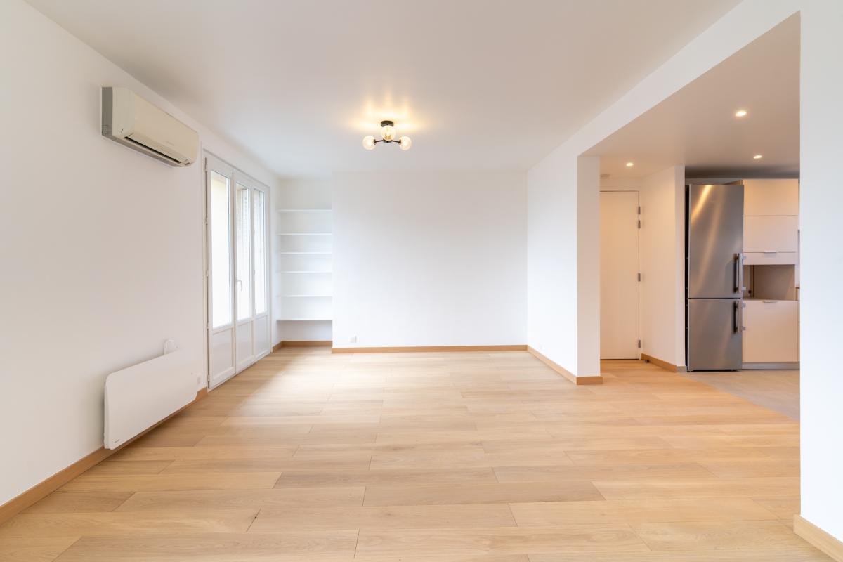 Hall d'entrée, Séjour avec cuisine ouverte équipée (meubles, plaque, four, hotte, lave-vaisselle, réfrigérateur) et balcon, 3 chambres, une salle de bains...