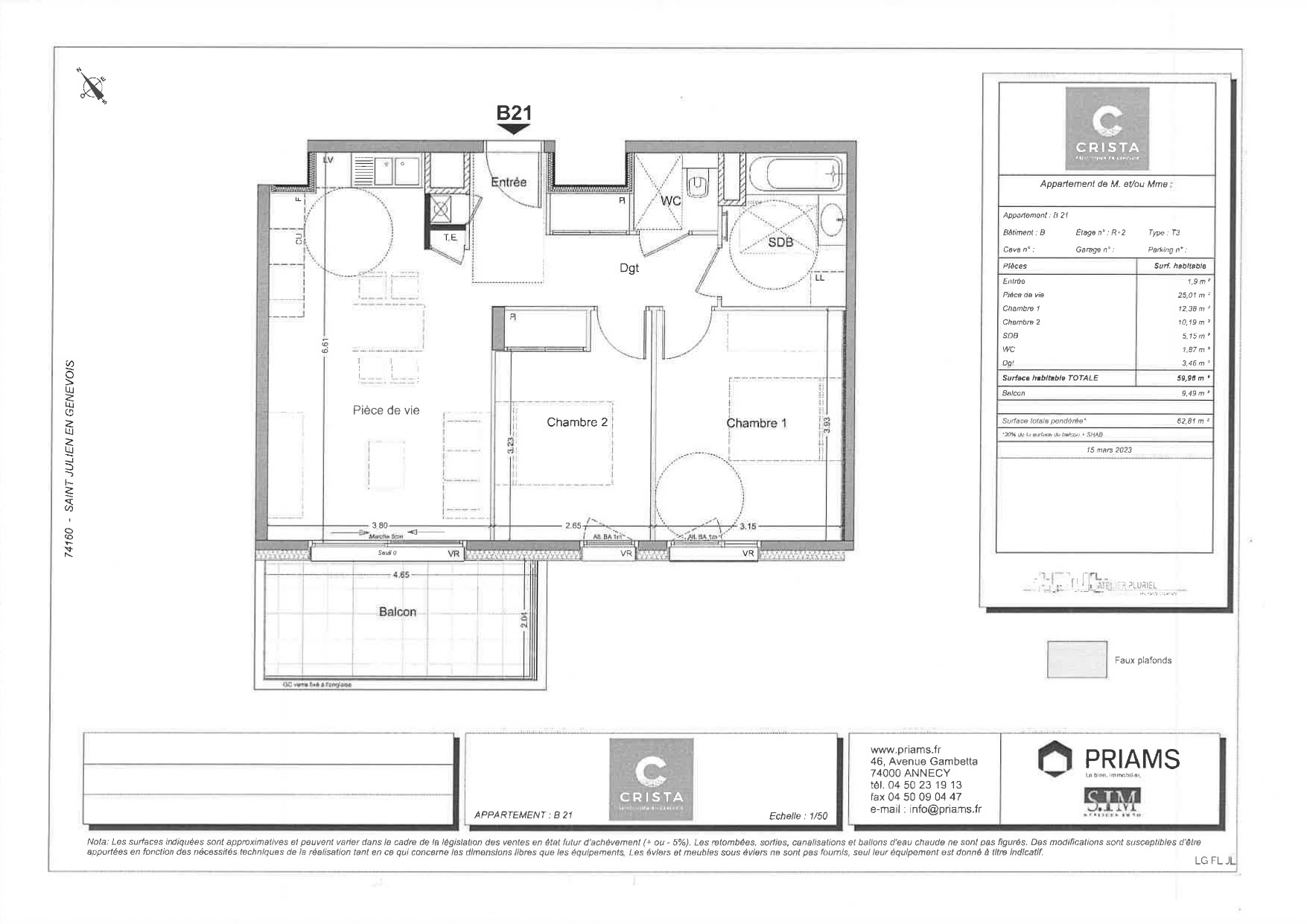ANNECY AVANT SCENE - T3 situé au 1er étage composé d'une entrée avec placard, d'une cuisine équipée ouverte sur séjour avec balcon de 11m², deux chambres une salle de bains, wc séparé. Une cave, un garage. Chauffage et eau chaude collectifs. Disponi...