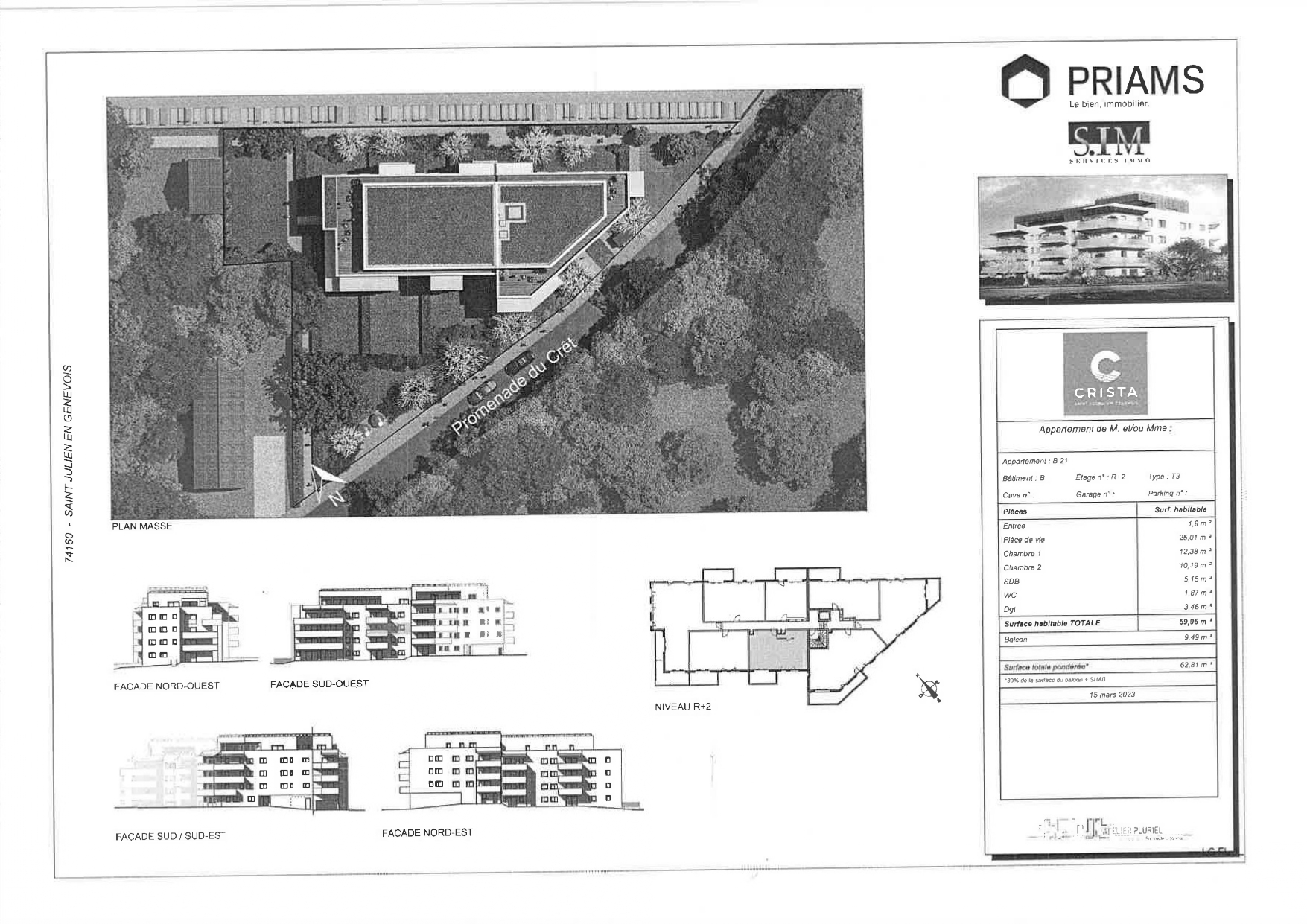 DEPOT DOSSIER OBLIGATOIRE SUR NOTRE SITE INTERNET AVANT TOUTE VISITE MEYTHET proche centre dans immeuble neuf, T4 au 3ème étage avec cuisine ouverte (équipée hotte et plaque cuisson) sur séjour avec grand balcon, trois chambres dont deux avec placard et une ...