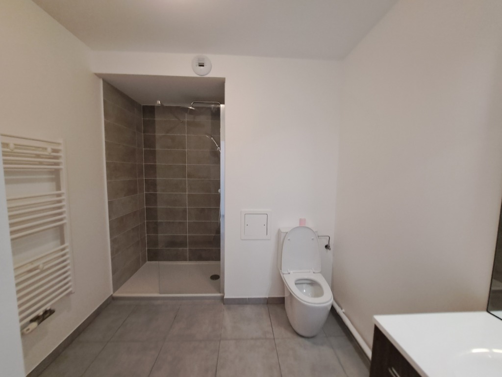 Dans une résidence neuve, appartement de type T1 situé au 5 ème étage et comprenant une entrée avec placard, cusiine équipée ouverte sur la pièce de vie et donnant sur un balcon, salle d'eau avec wc, place de parking en plus loyer 100 euros CC honoraire...