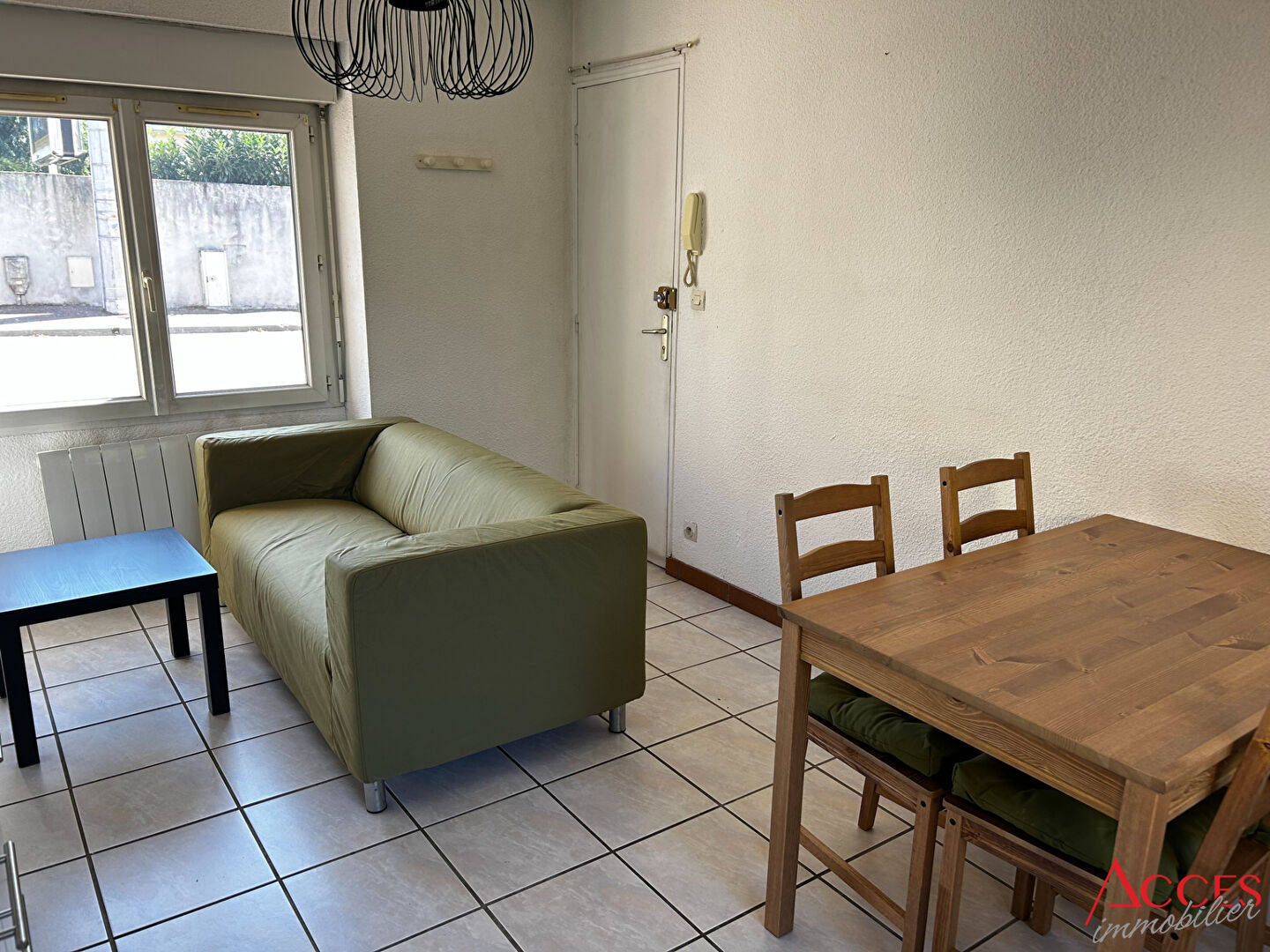 Au Rez-de-chaussée d'un petit immeuble, à côté d'un supermarché. Grand T2 meublé composé d'une pièce principale avec coin cuisinette équipée , d'une chambre séparée, d'une salle de bain et WC séparés. Chauffage électrique. A proximité...