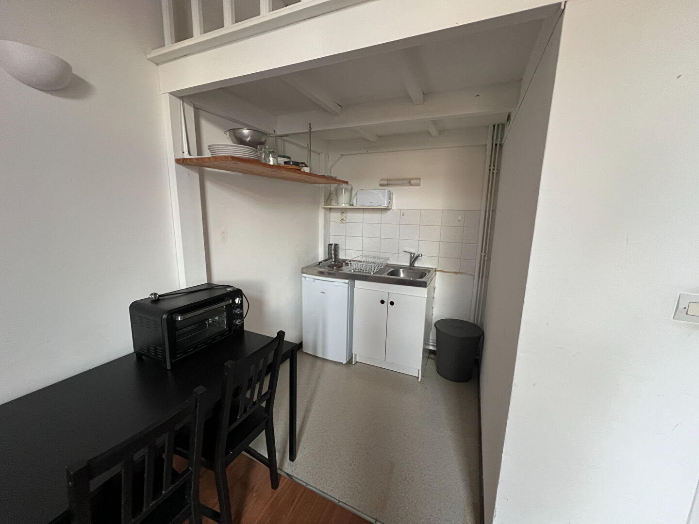 Beau studio mezzanine offrant pièce principale avec cuisine aménagée et équipée, salle d'eau avec WC, coin nuit en mezzanine. Provision sur l'eau, communs comprise dans les charges. A voir rapidement !!