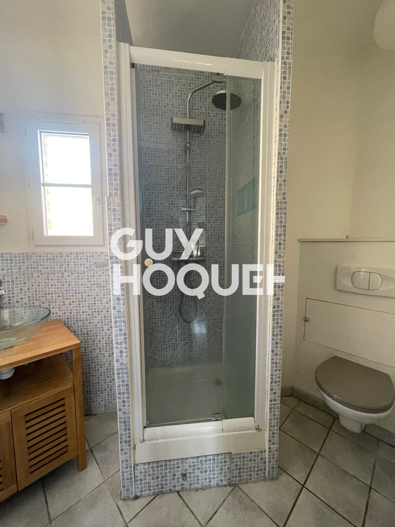 Appt de 23 m2 comprenant entrée, sejour avec coin cuisine, salle de douche et wc, au premier une chambre