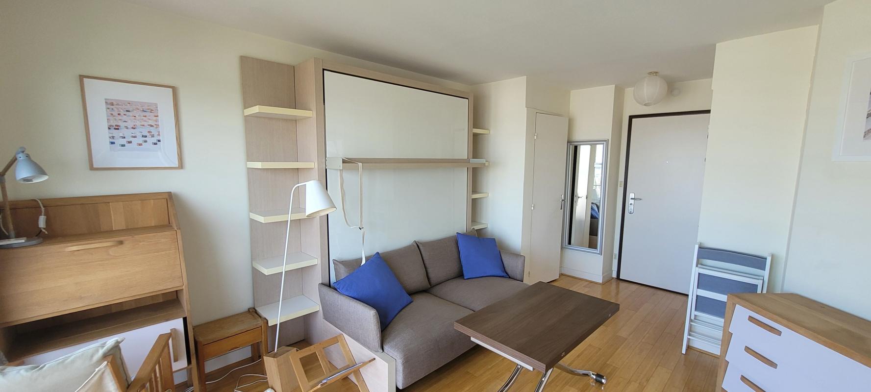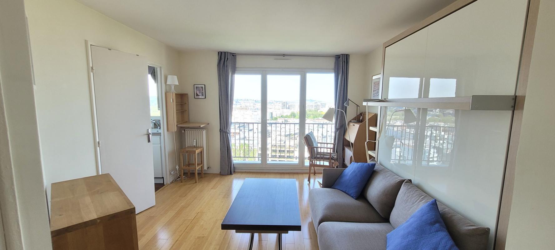 Boulevard Rodin - Immeuble Panorama (RER C à 1', T2 à 10') Au 8ème étage (asc.), studio meublé de 21 m² en parfait état (1ère mise en location) avec pièce de vie de 15 m², salle d'eau et Wc indépendants, coin cuisine. Balcon exposé N.O, vue tout...