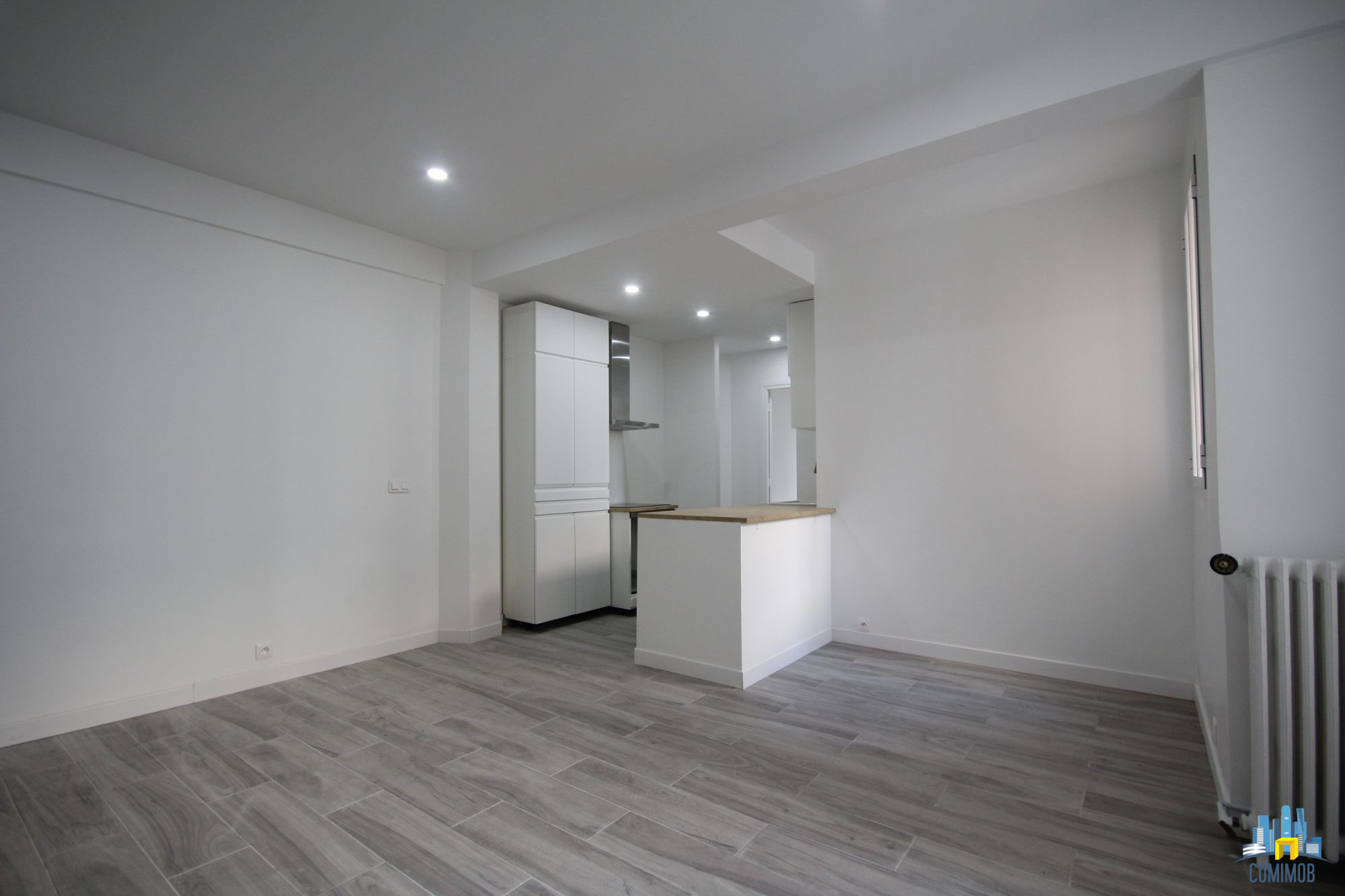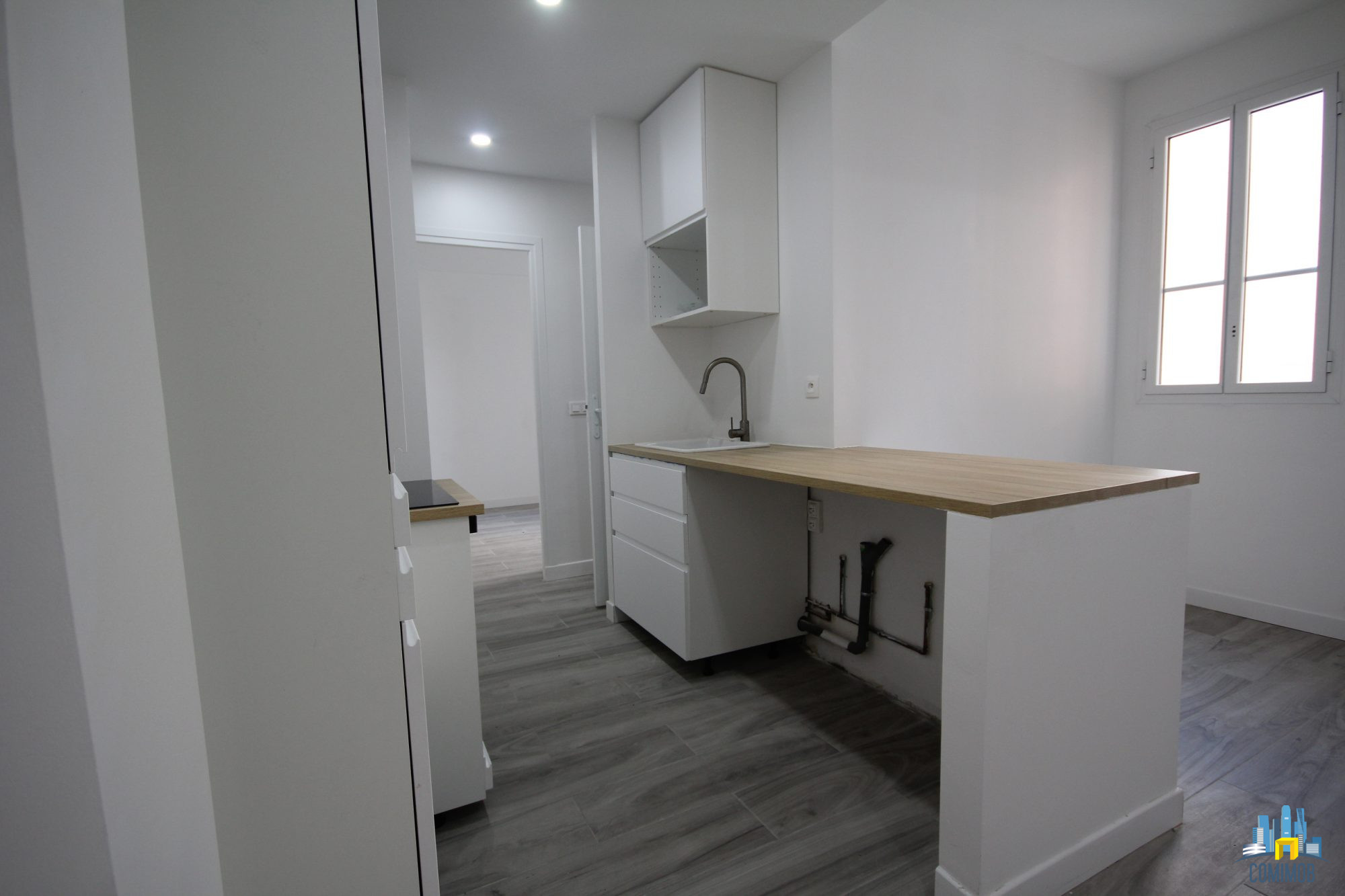 Il comprend une entrée avec placards, un grand séjour avec une cuisine aménagée équipée, ...