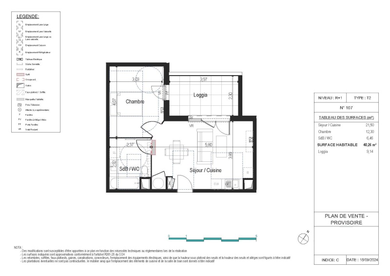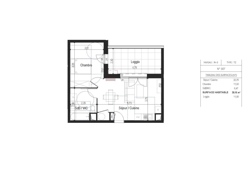 A 2 pas de la Gare, au 1er étage d'une résidence neuve avec ascenseur, appartement de type 2 avec séjour cuisine aménagée, chambre, salle de bains, wc, place de parking couverte et sécurisée. GLI + PINEL B1.
