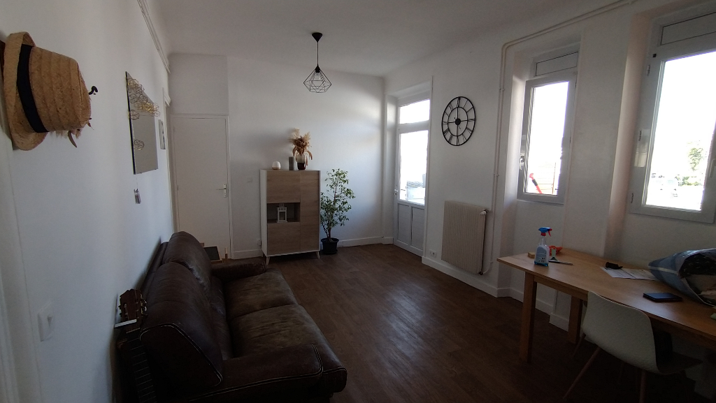 Appartement de 3 pièces principales de 58m² situé au premier étage sans ascenseur, comprenant: séjour-salon avec balcon filant, cuisine avec vue mer et donnant sur balcon, salle de bains, 2 chambres dont une avec vue mer, wc, débarras.