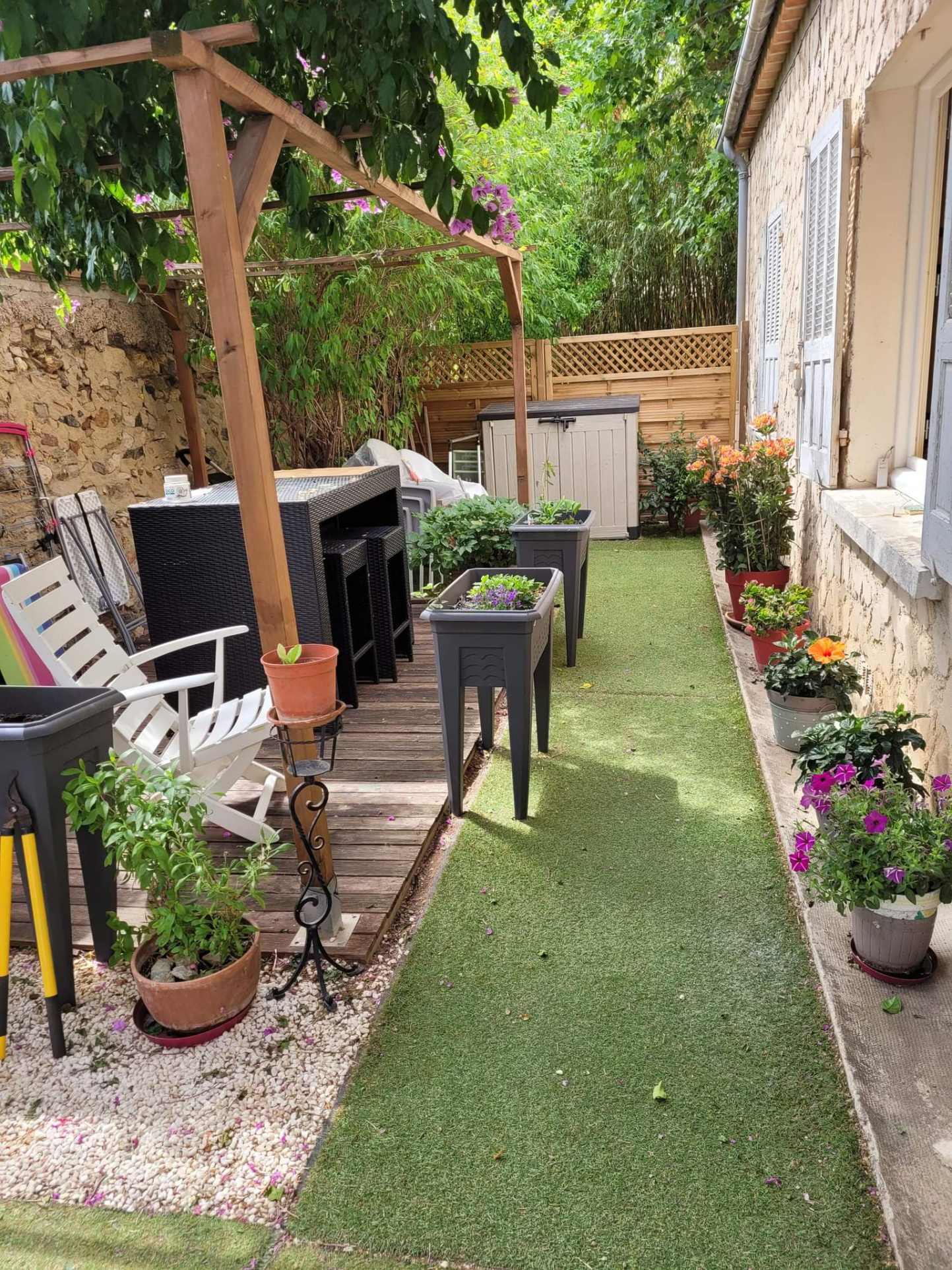 Appartement T2 de 44.49 m2, situé au RDC d'une maison de ville, bénéficiant d'une terrasse de 32.38 m2, et comprenant : séjour, cuisine aménagée et semi-équipée (avec plaque de cuisson induction, hotte électrique), chamb...
