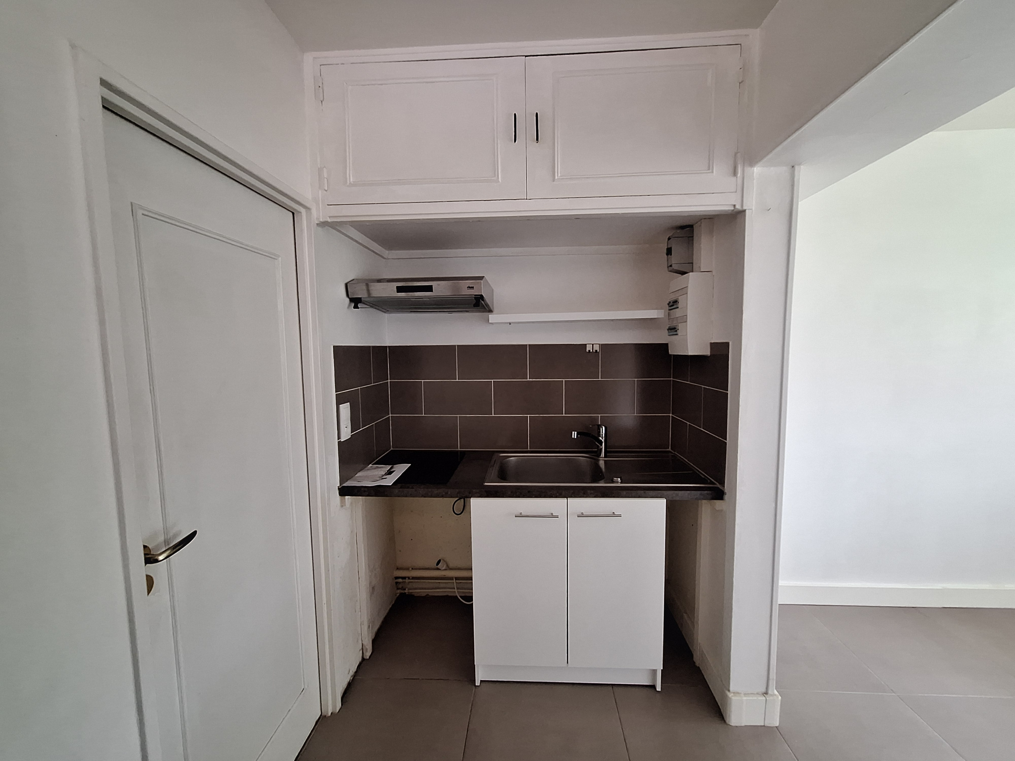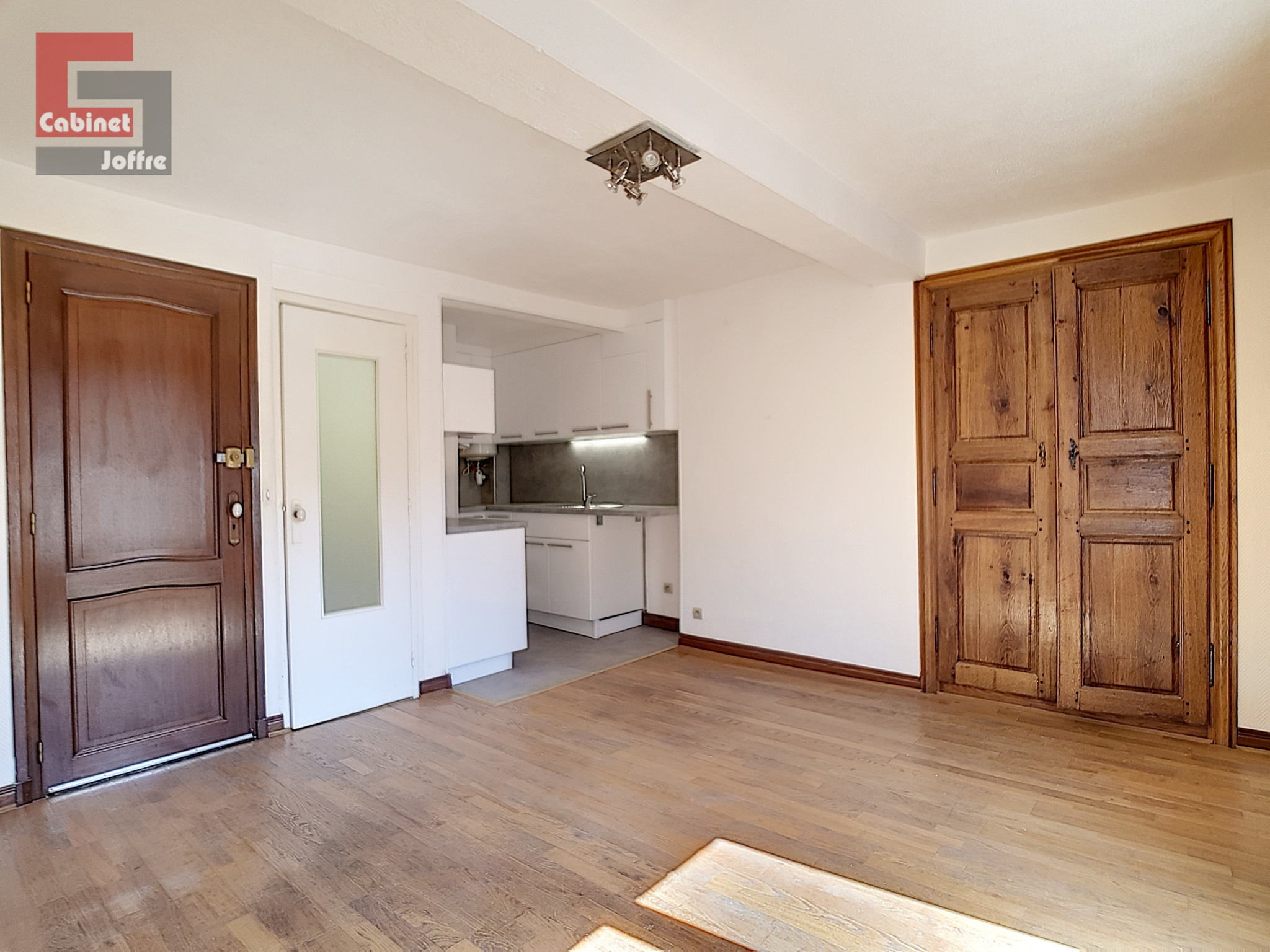Composé d'une entrée, un séjour avec coin cuisine aménagée et équipée (plaque et hotte), placards, une salle d'eau avec WC.