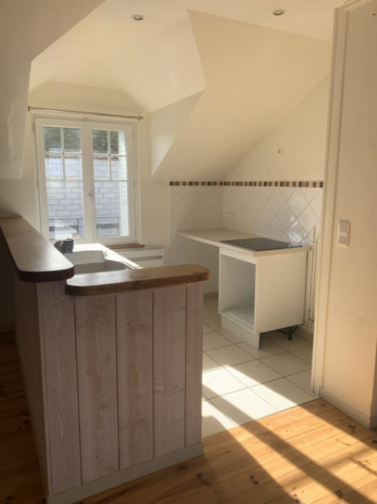 Appartement Type F2 en duplex comprenant: entrée, séjour avec coin cuisine, salle de bains avec WC, accès à la chambre en mezzanine.