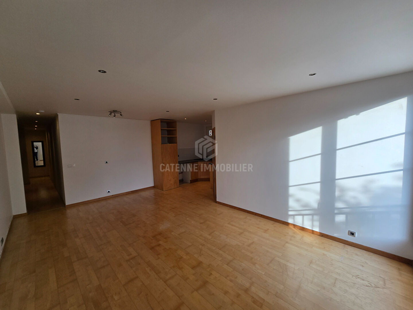 L'appartement est composé d'une entrée avec placards, une cuisine à aménager, un séjour avec rangements, et palier desservant les WC, ...