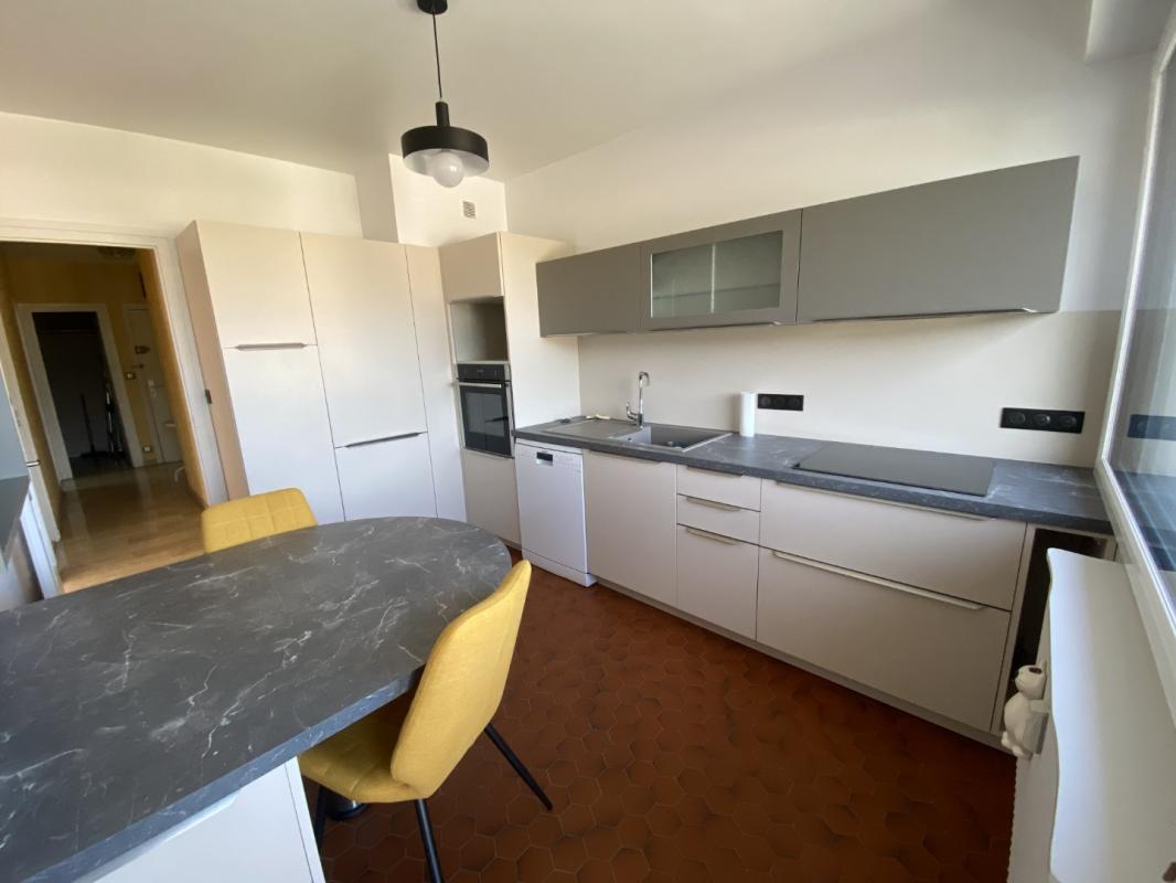 Un appartement de type T3 comprenant : Un hall d'entrée donnant sur un dégagement, un débarras, deux grandes chambres, une salle de douche, un WC, une cuisine équipée avec balcon et un séjour avec balcon communiquant.