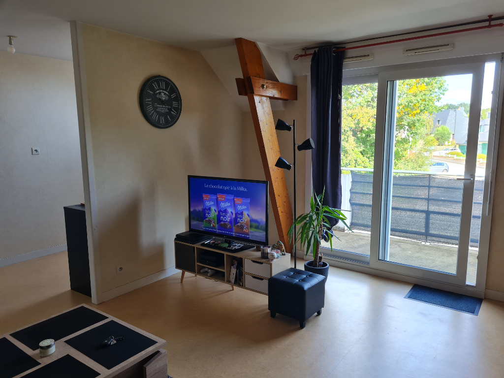 Un appartement en duplex à louer dans une résidence récente de 48 m² offrant entrée avec placard, séjour avec balcon, cuisine nue et WC.