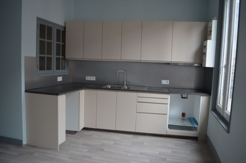 REFAIT A NEUF - Belle prestation - Appartement en centre ville, situé au 1er étage comprenant belle pièce à vivre de 38 m² avec cuisine aménagée et équipée (plaque, hotte, four, micro-onde, frigo et lave-vaisselle), salle d'eau avec douche, WC. A l'é...