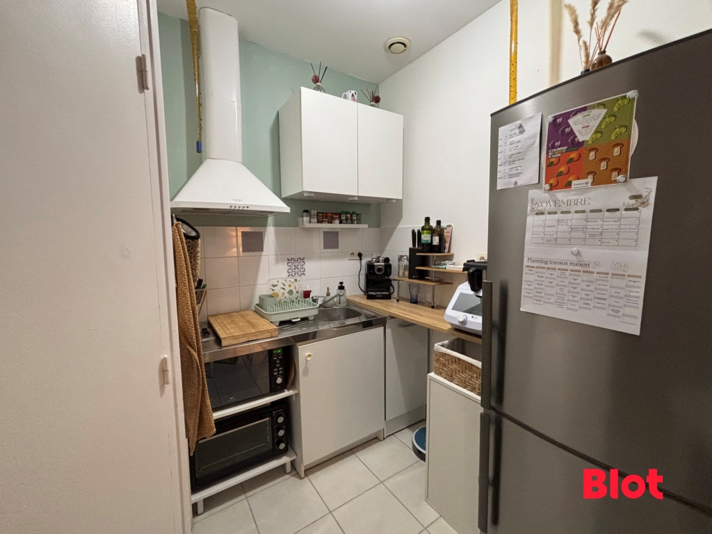 L'appartement comprend une cuisine aménagée et équipée de plaques à induction et d'une hotte, une salle d'eau avec wc.