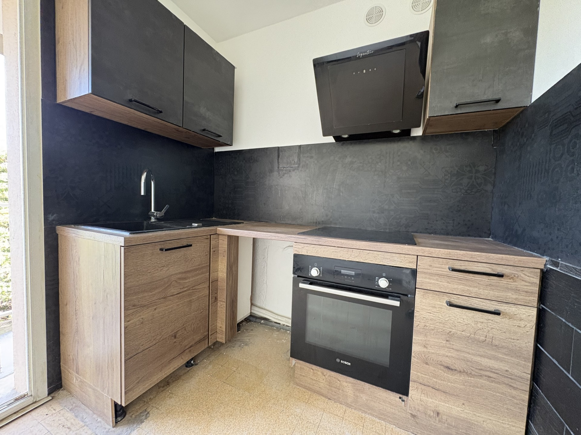 Appartement T3 refait à neuf comprenant entrée, séjour ouvert sur une cuisine aménagée avec îlot central, 2 chambres et salle d'eau. Climatisation reversible