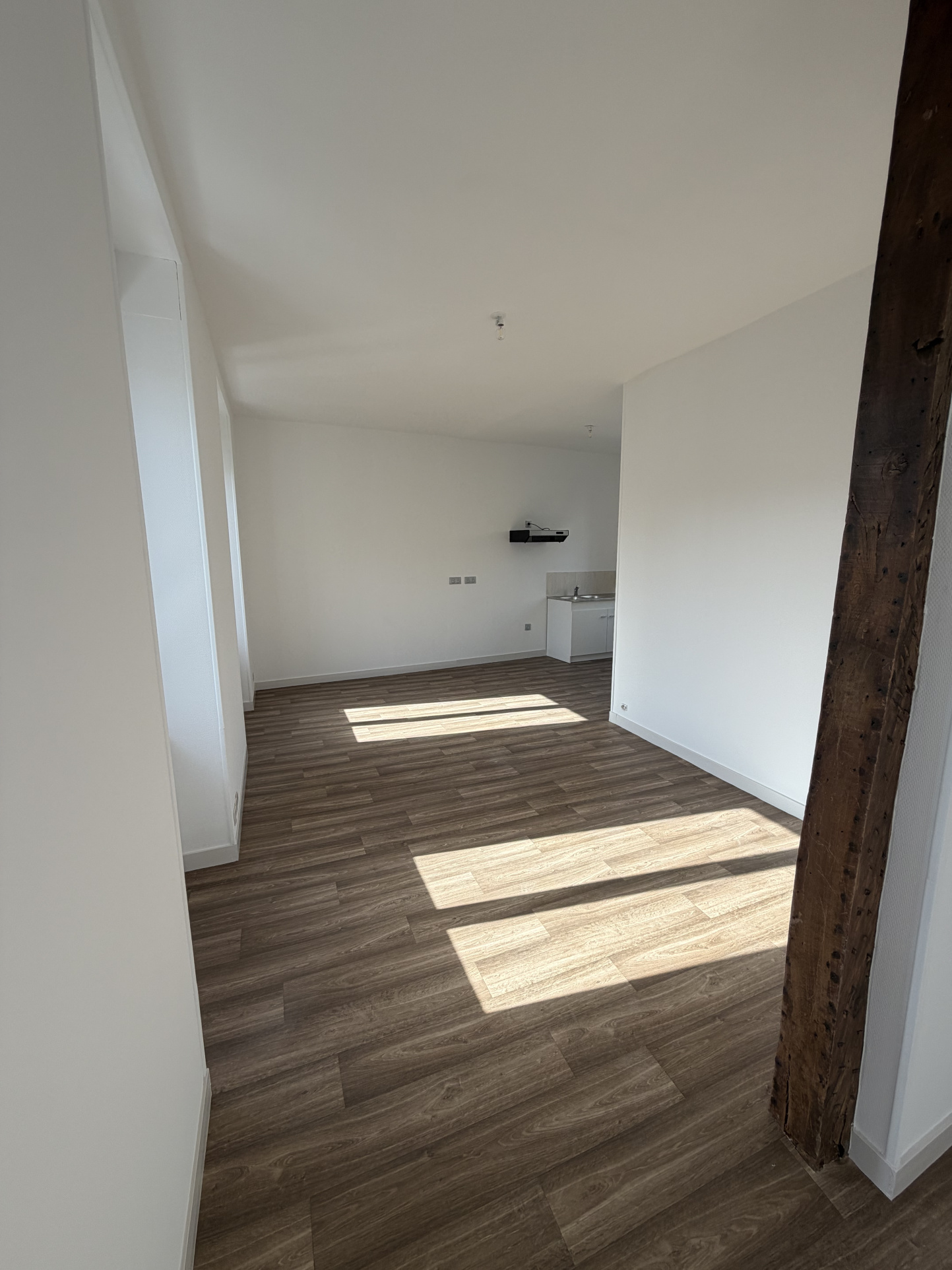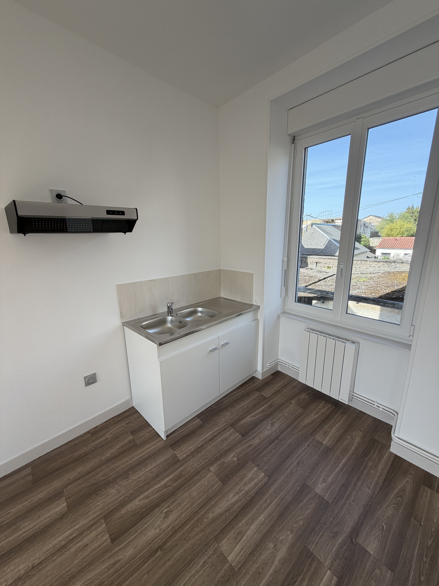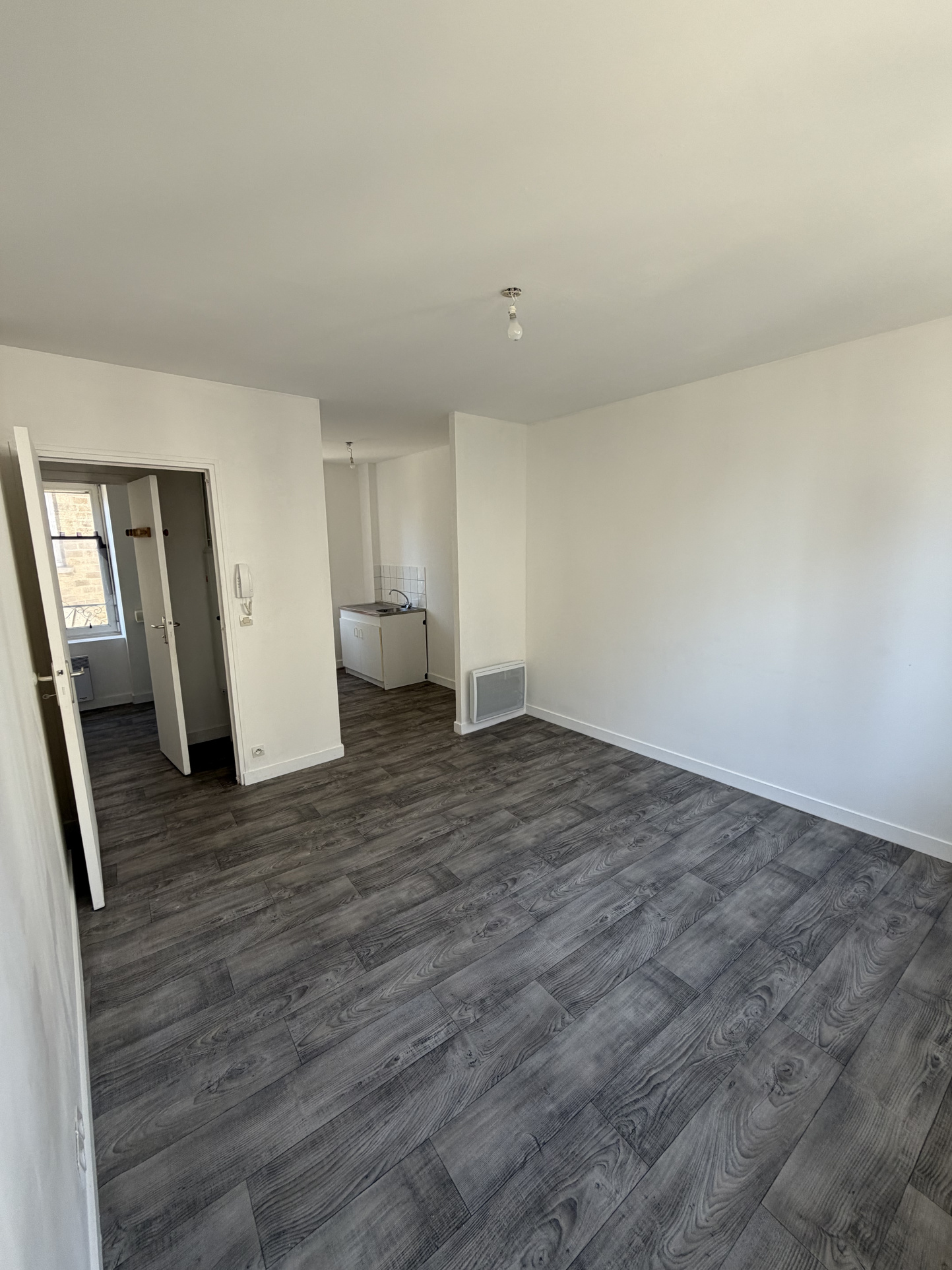 Appartement en rez-de-chaussé centre-ville f comprenant pièce principale avec cuisine amnénagée, une chambre et une salle d'eau avec wc. Chauffage électrique.