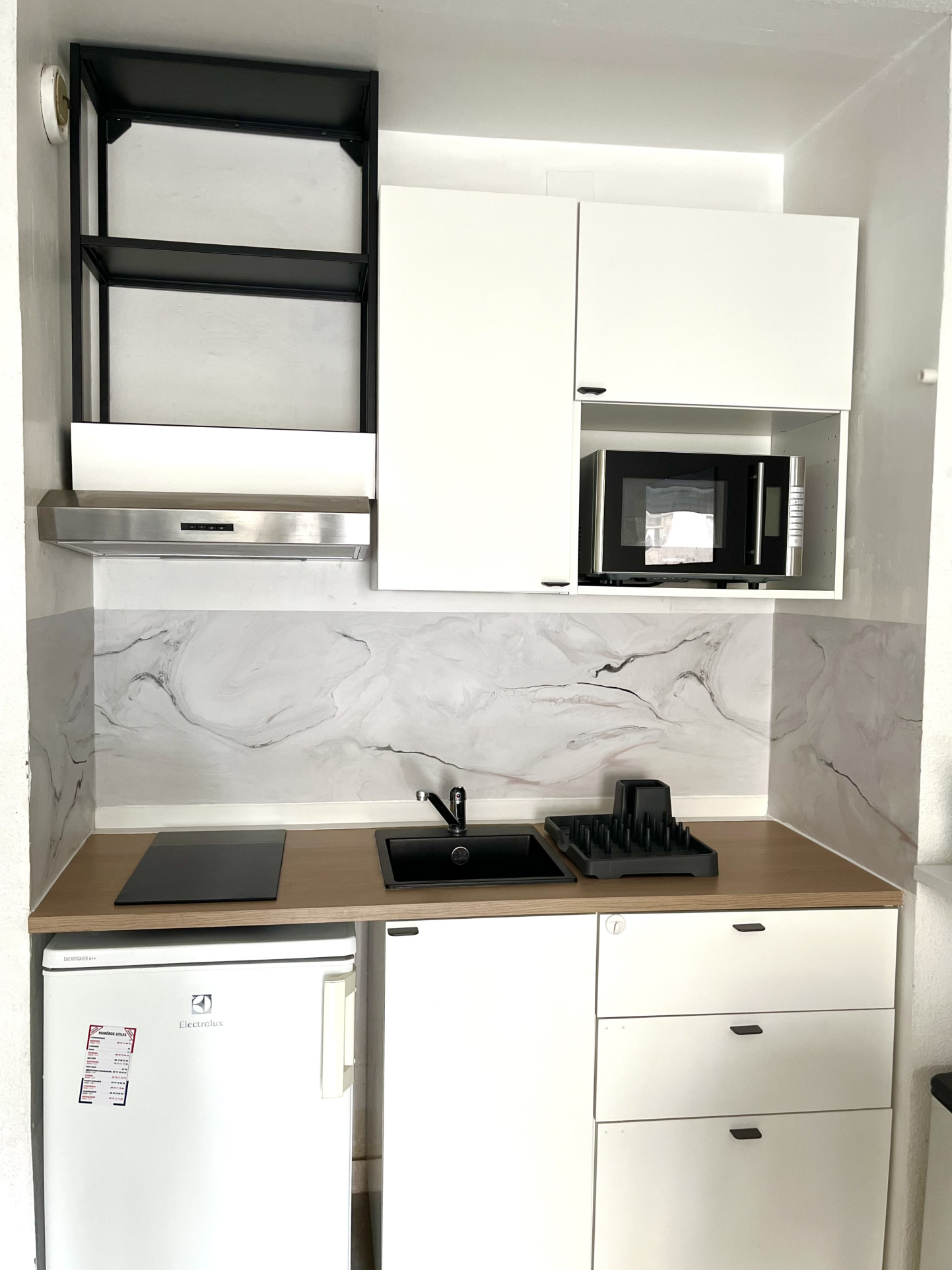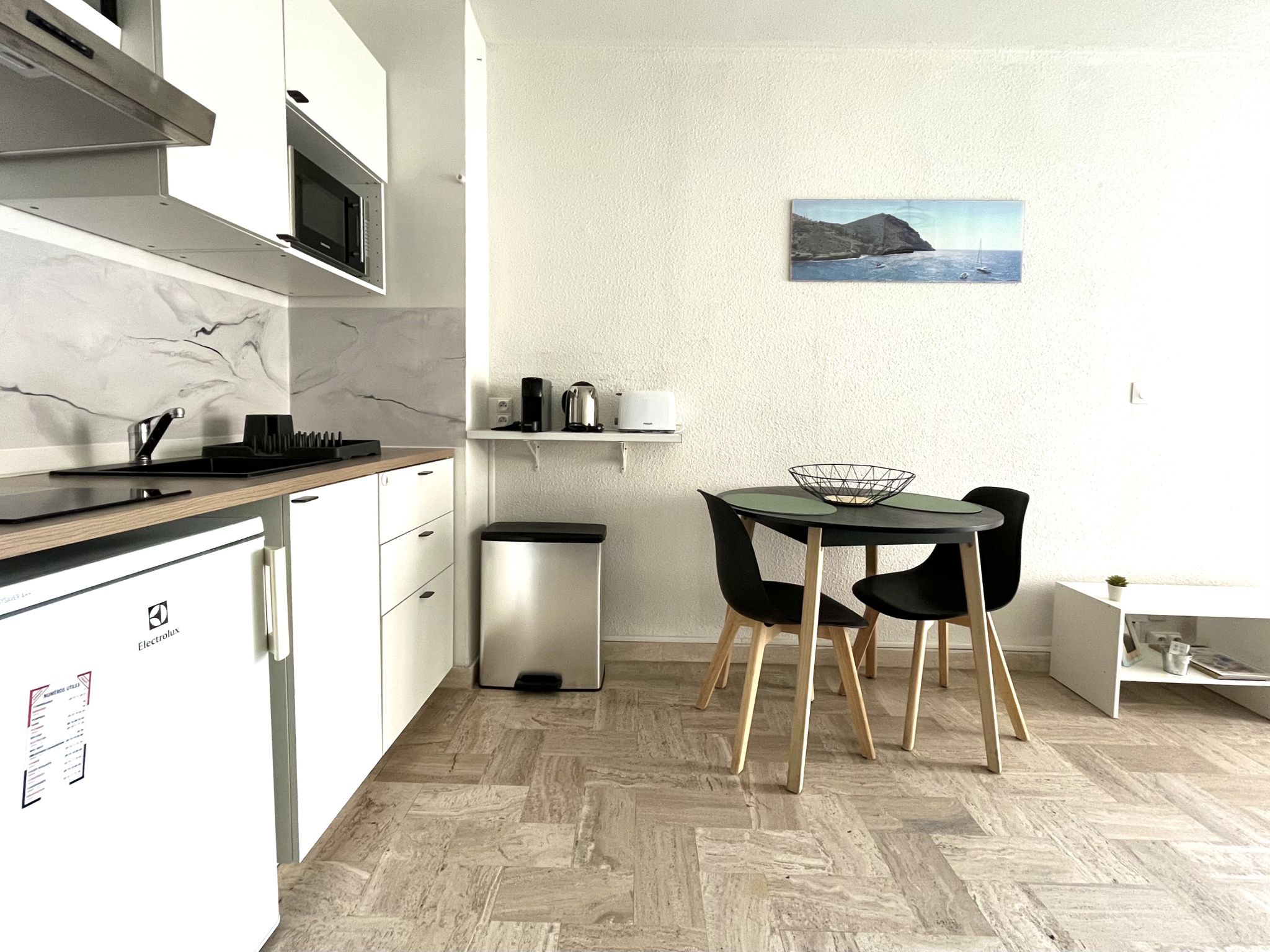 A louer à l'année en meublé Situé au Centre ville Port, Agréable Deux pièces de 26.03 m² traversant se composant d'un espace chambre avec de nombreux rangements, d'une salle d'eau avec wc et branchement pour lave linge, d'une kitchenet...