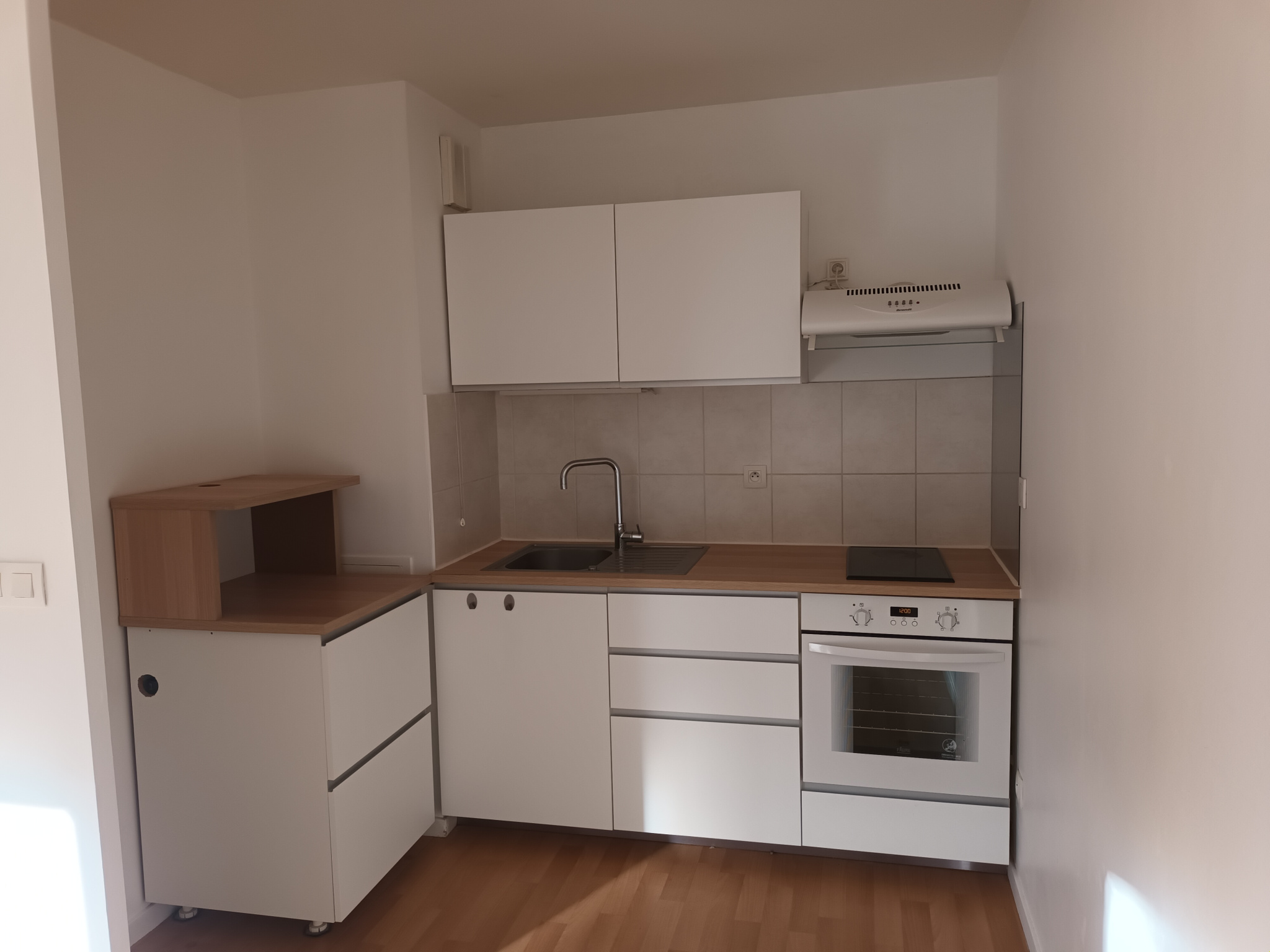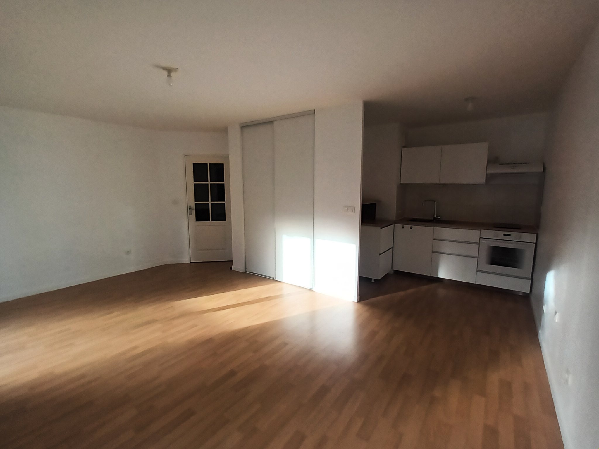 Appartement T3 situé au 1er étage comprenant entrée, cuisine aménagée / équipée (four, plaque de cuisson, hotte) / séjour, 1 chambre avec dressing, 1 bureau, salle d'eau / wc. Terrasse