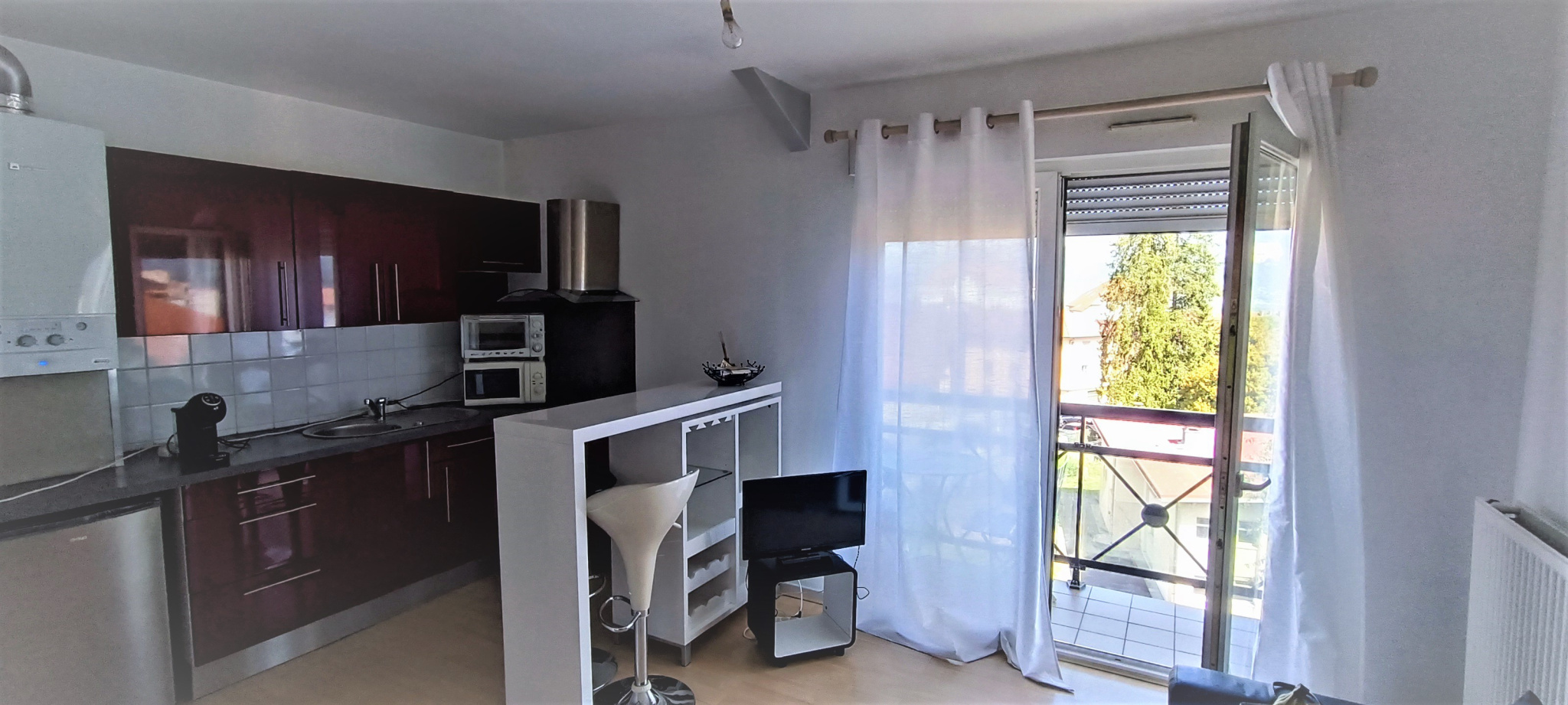 La Roche sur Foron. A deux pas du centre ville ( rue du paradis) et 400m de la gare, au Trianon, studio lumineux au 4ème et dernier étage dans une résidence récente au calme avec ascenseur, balcon et cave, placards intégrés, cuisine équipée, SDB avec WC, chauf...