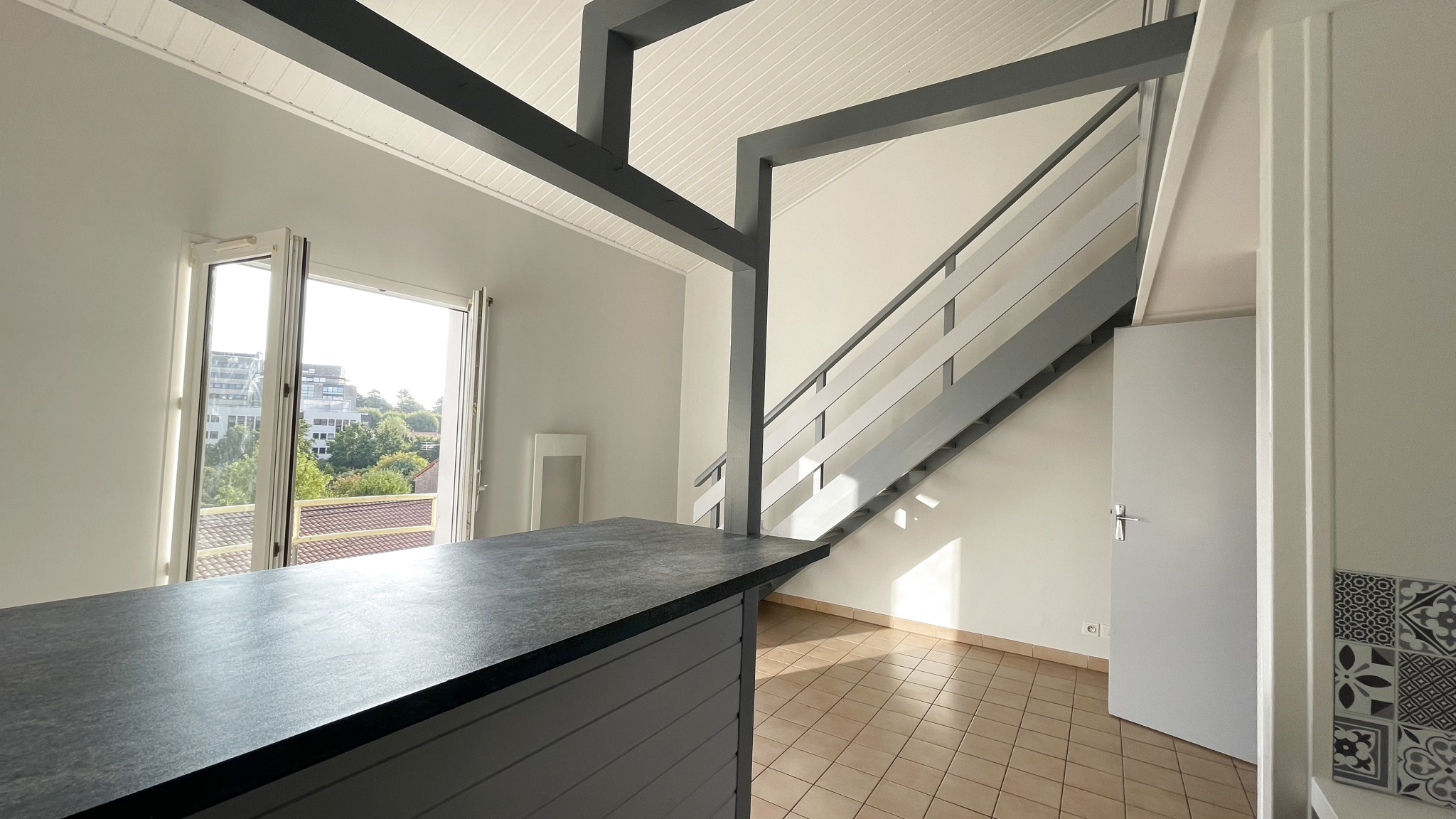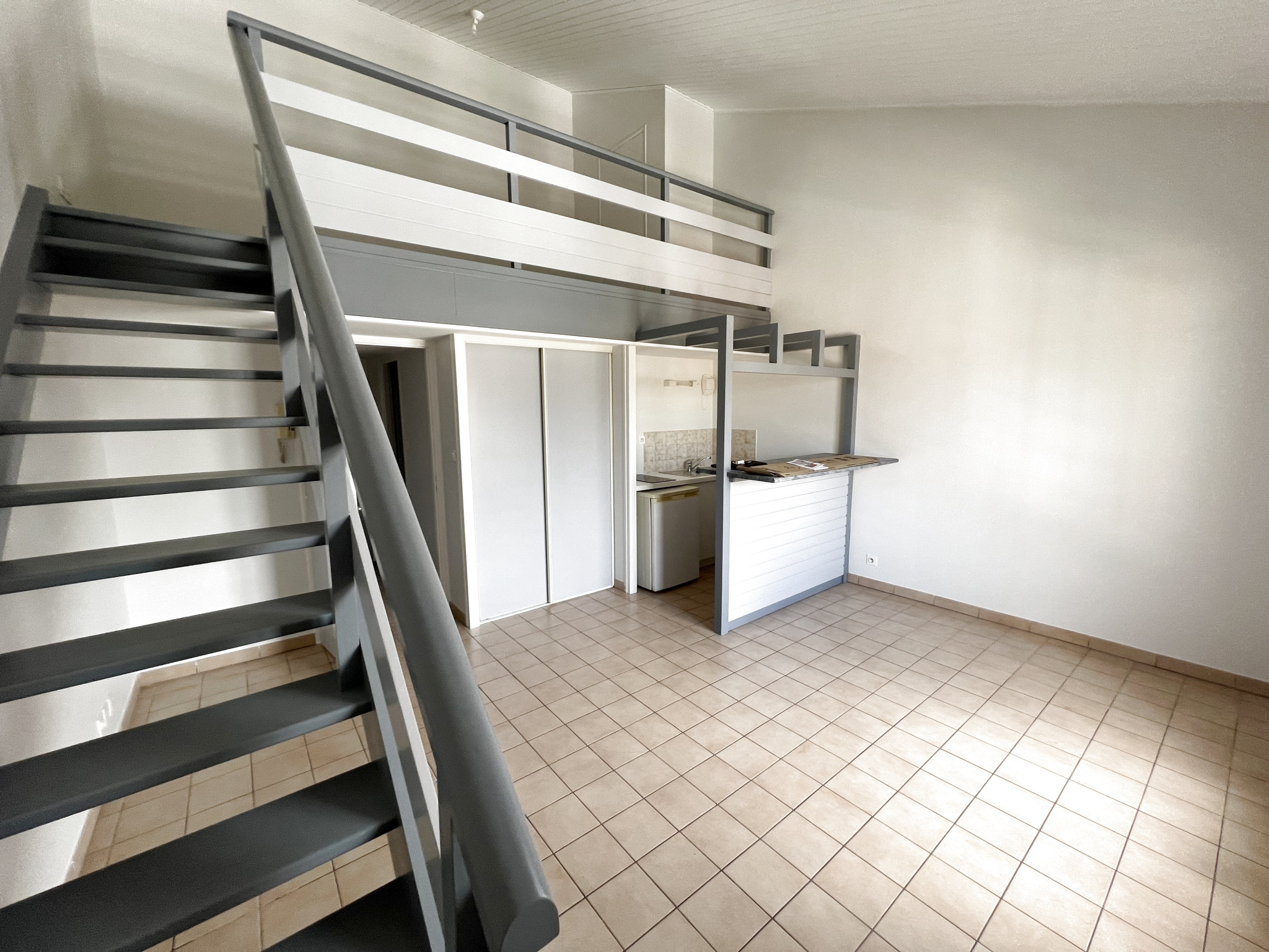 LA ROCHE-SUR-YON - PROXIMITE DU PENTAGONE ET DU HARAS - APPARTEMENT T1 EN DUPLEX (35 m2) comprenant : entrée avec placard, pièce de vie avec cuisine ouverte aménagée et semi-équipée (plaque de cuisson et réfrigérateur), une chambre mezannine, une salle d'...