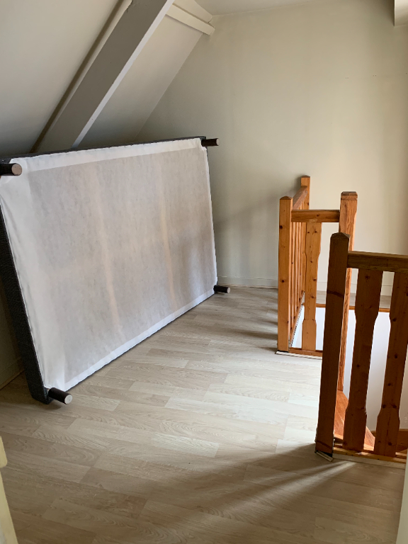 A LOUER Lamballe - T2 duplex dans une petite ruelle comprenant : une entrée direct sur la pièce de vie, cuisine ouverte (four, hotte, plaque), WC. En duplex un coin nuit et une salle d'eau.