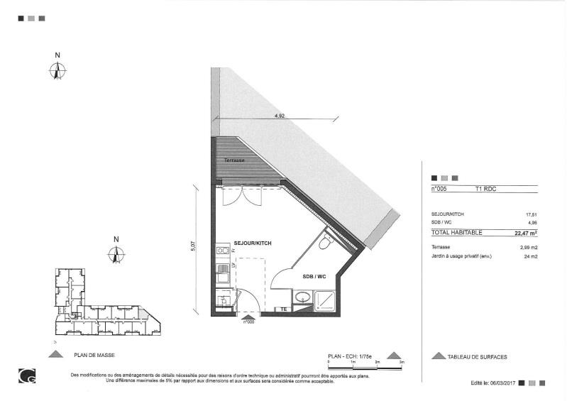 Il se compose d'une entrée avec placard, d'une pièce principale avec kitchenette donnant sur un balcon et d'une salle d'eau avec WC.