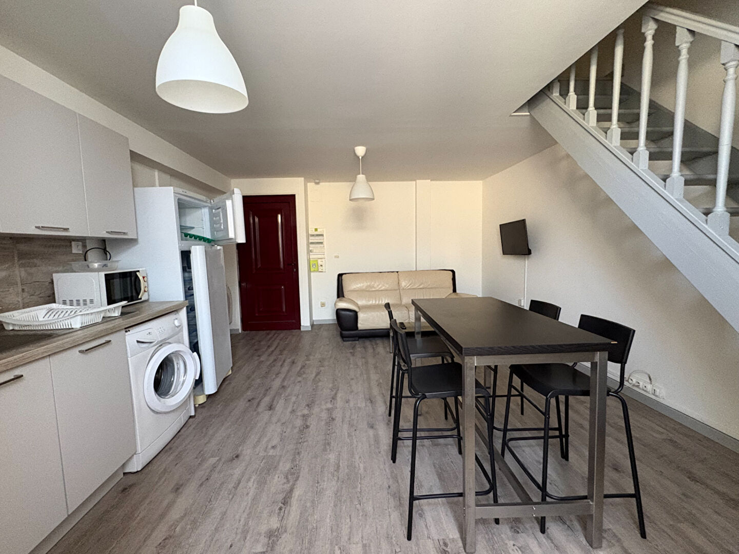 A deux pas des commerces et écoles, appartement meublé de type 3 duplex refait à neuf, comprenant une pièce de vie avec cuisine aménagée et équipée ; à l'étage, chambre, dressing, bureau, salle d'eau avec wc.
